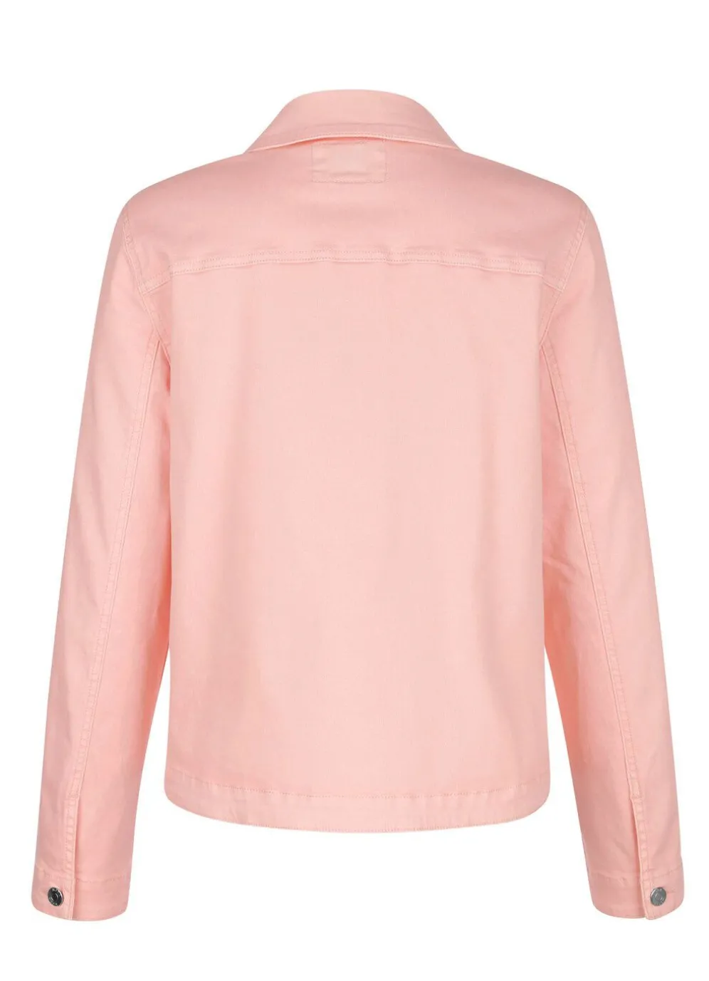 Gerade geschnittene Jeansjacke mit Hemdkragen, Knopfleiste, Brusttaschen, Eingrifftaschen sowie langen Ärmeln mit Knopf und Manschette. Länge ca. 56 cm