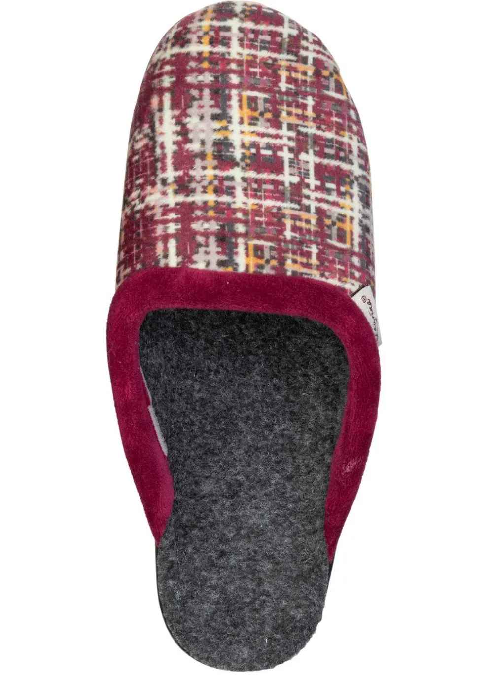 Hausschuhe aus weichem, kariertem Samt, mit angenehmer Polsterung: Weite G, Futter und Fußbett aus Filz, superleichte PU-Laufsohle sowie 20 mm Keilabsatz