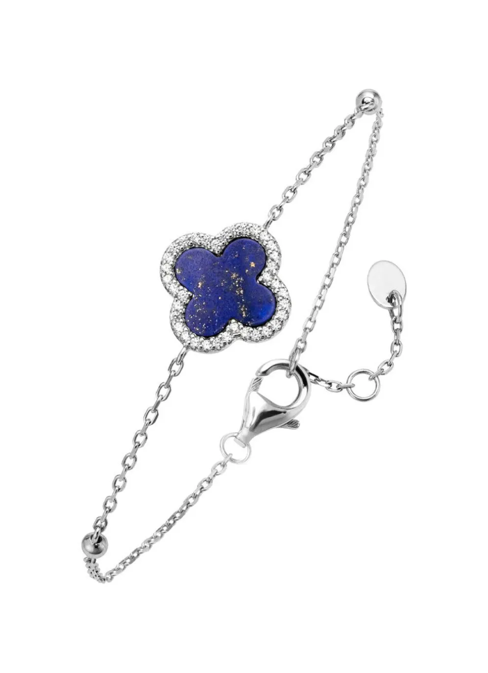 Kleeblatt-Armband mit echt Lapislazuli und synth. Zirkonia