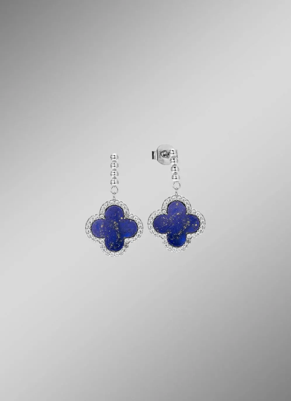 Kleeblatt-Ohrstecker mit echt Lapislazuli und synth. Zirkonia