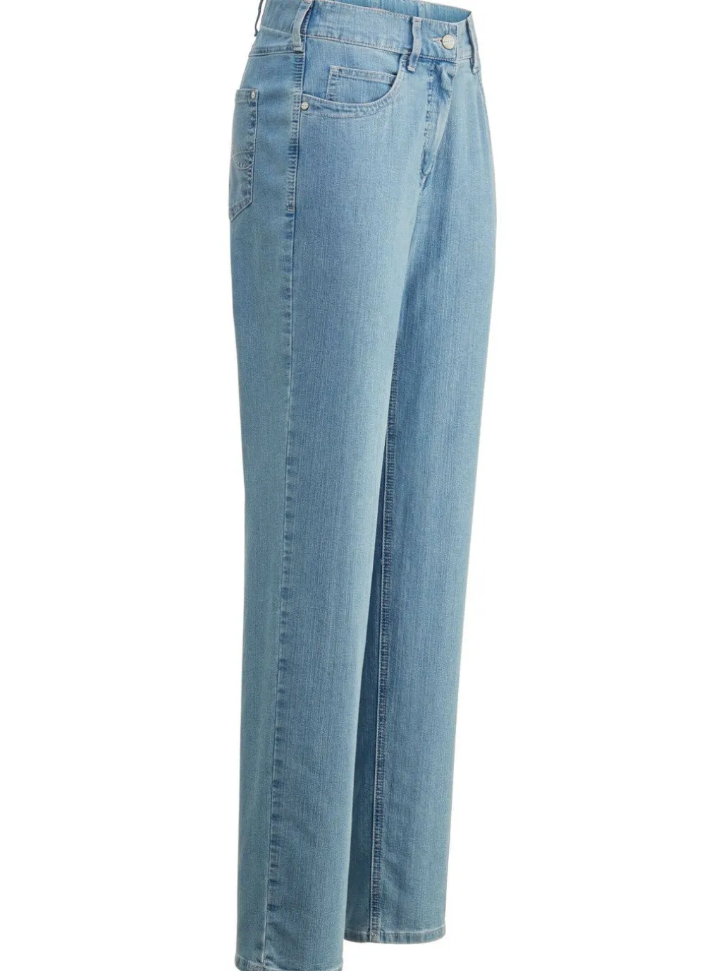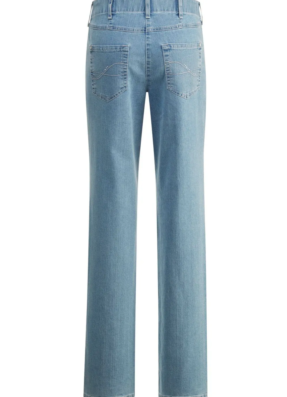 Ihr Modell CARLA – für hohen Tragekomfort sorgt diese attraktive Komfortjeans in 5-Pocket-Form: elastischer Formbund, Gürtelschlaufen, Knopf- und Reißverschluss sowie schöne, kontrastfarbene Stickerei, verziert mit Strasssteinen an den aufgesetzten Gesäßtaschen, Jeanssattel und dezente Auswascheffekte. Innenbeinlänge ca. 77 cm, Fußweite ab 37 cm.