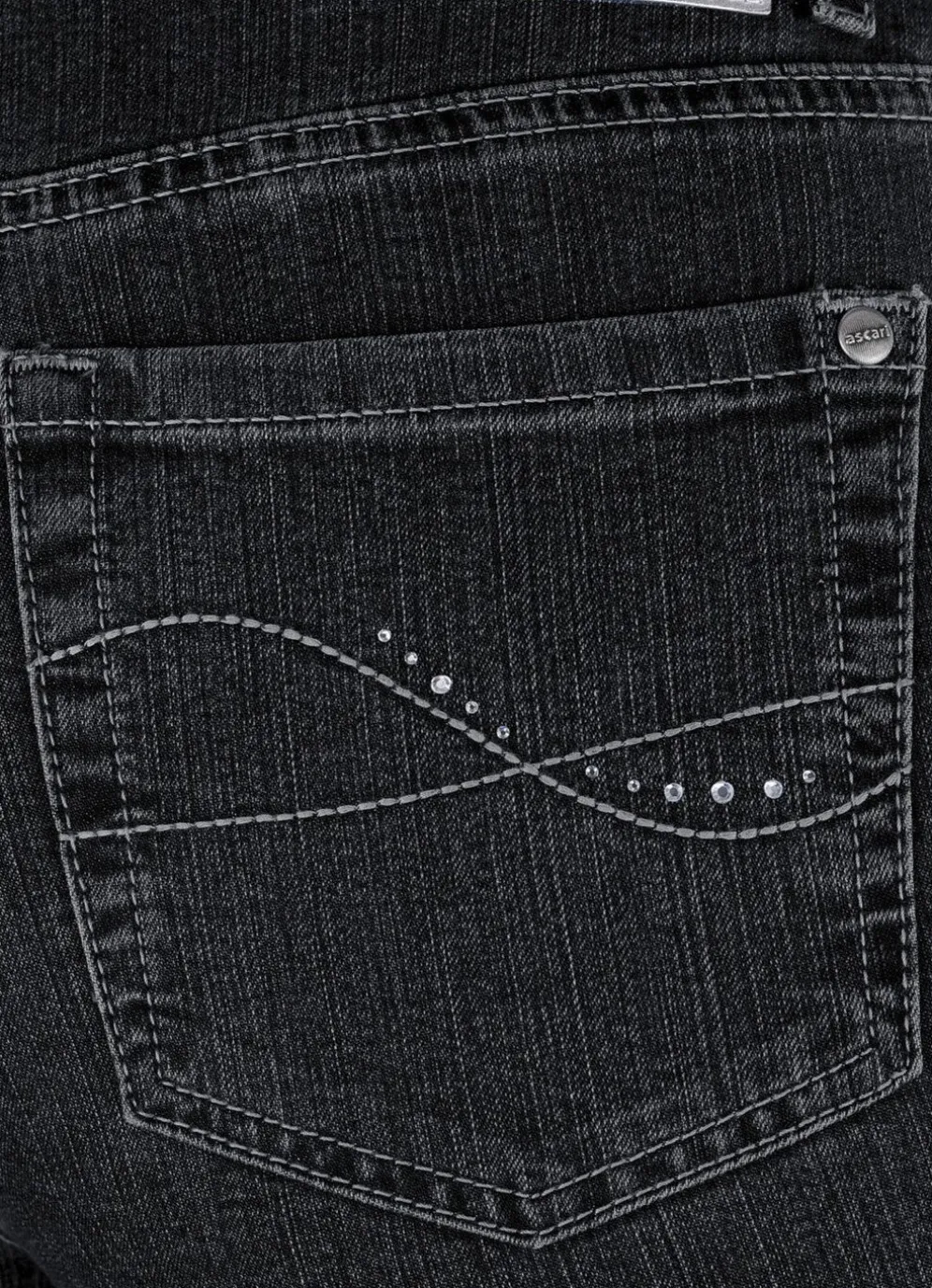 Ihr Modell ROMI – für absolutes Wohlbefinden sorgt diese ansprechende Komfortjeans in 5-Pocket-Form: elastischer Formbund, Gürtelschlaufen, Knopf- und Reißverschluss sowie schöne, kontrastfarbene Stickerei, verziert mit Strasssteinen an den aufgesetzten Gesäßtaschen, Jeanssattel und dezente Auswascheffekte. Innenbeinlänge ca. 77 cm, Fußweite ab 34 cm.