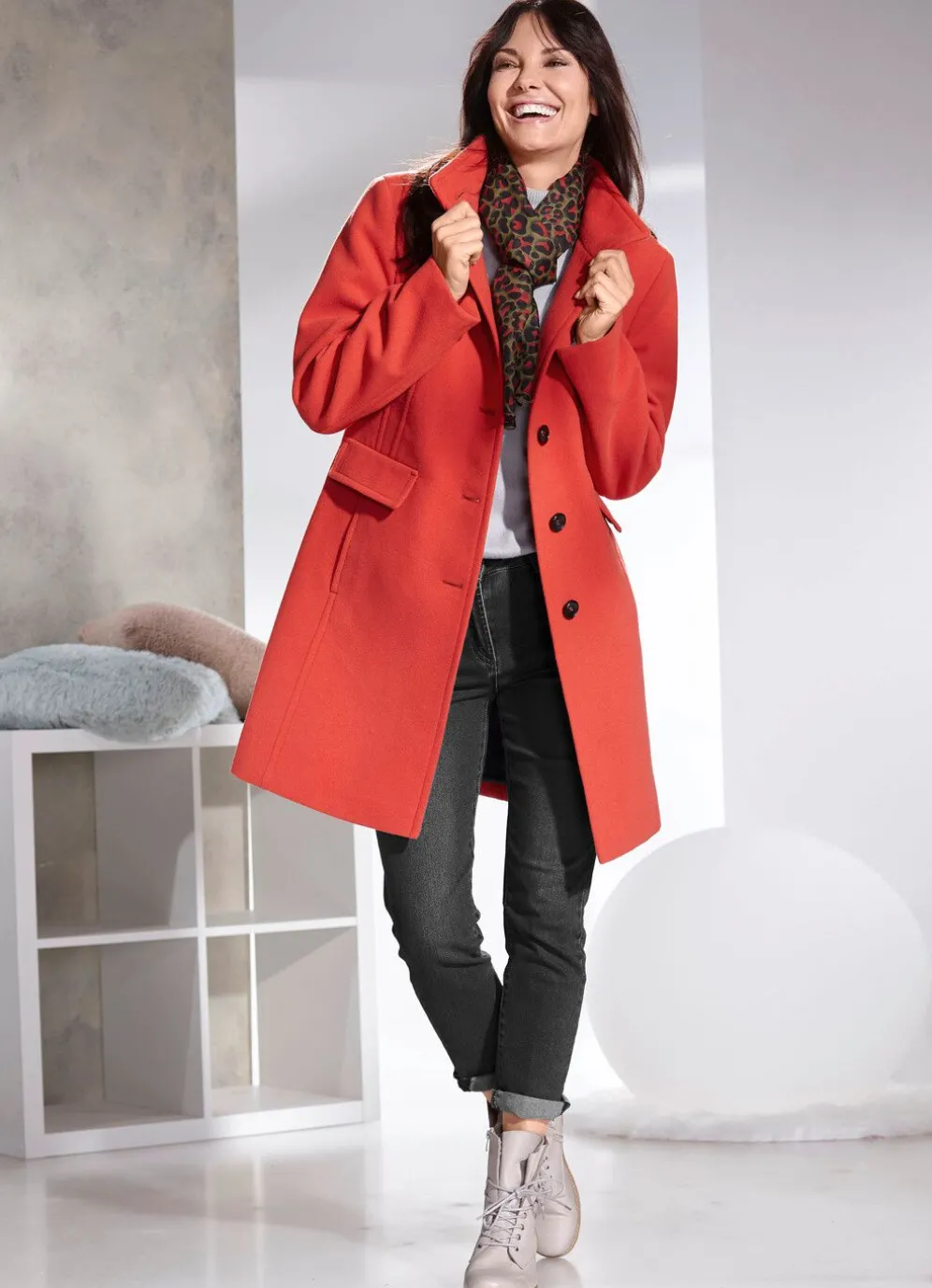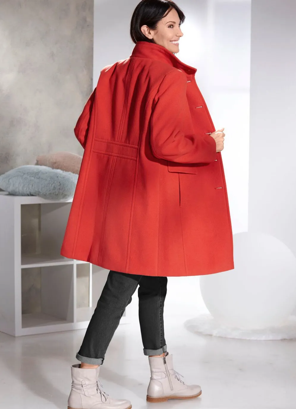Toller Kurzmantel mit Stehkragen, Knopfleiste, Zierpatte an den Nahttaschen, sowie einer Innentasche. Länge ca. 88 cm, ab Gr. 46 ca. 90 cm, ab Gr. 50 ca. 92 cm.