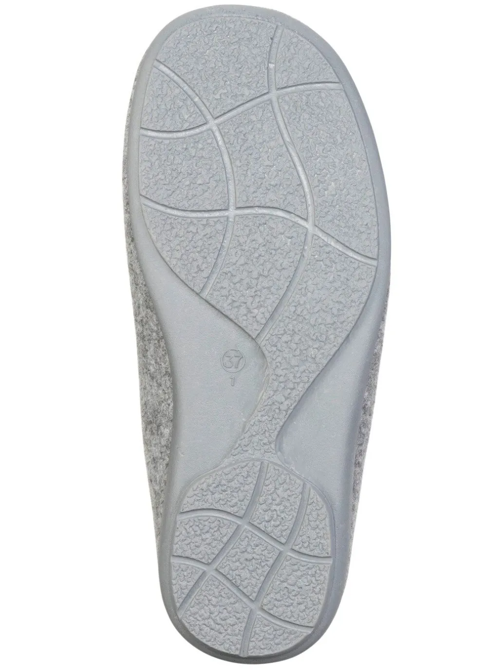 Hausschuhe von „Laurina“, aus Filz mit niedlicher Eulen-Applikation: herausnehmbares Textil-Fußbett, superleichte Gummi-Laufsohle sowie 10 mm Keilabsatz