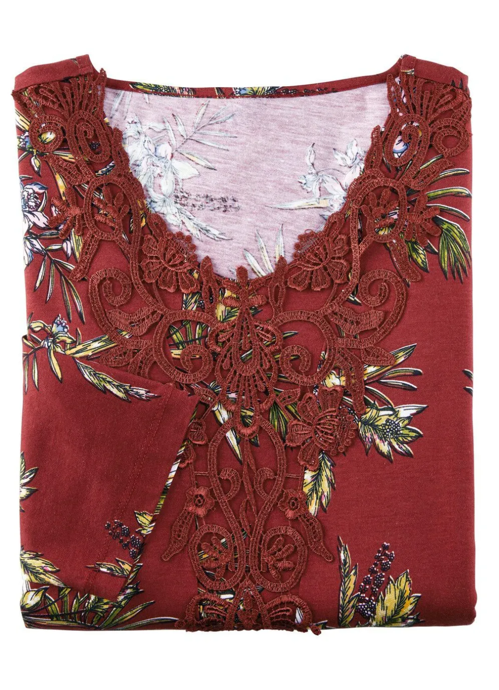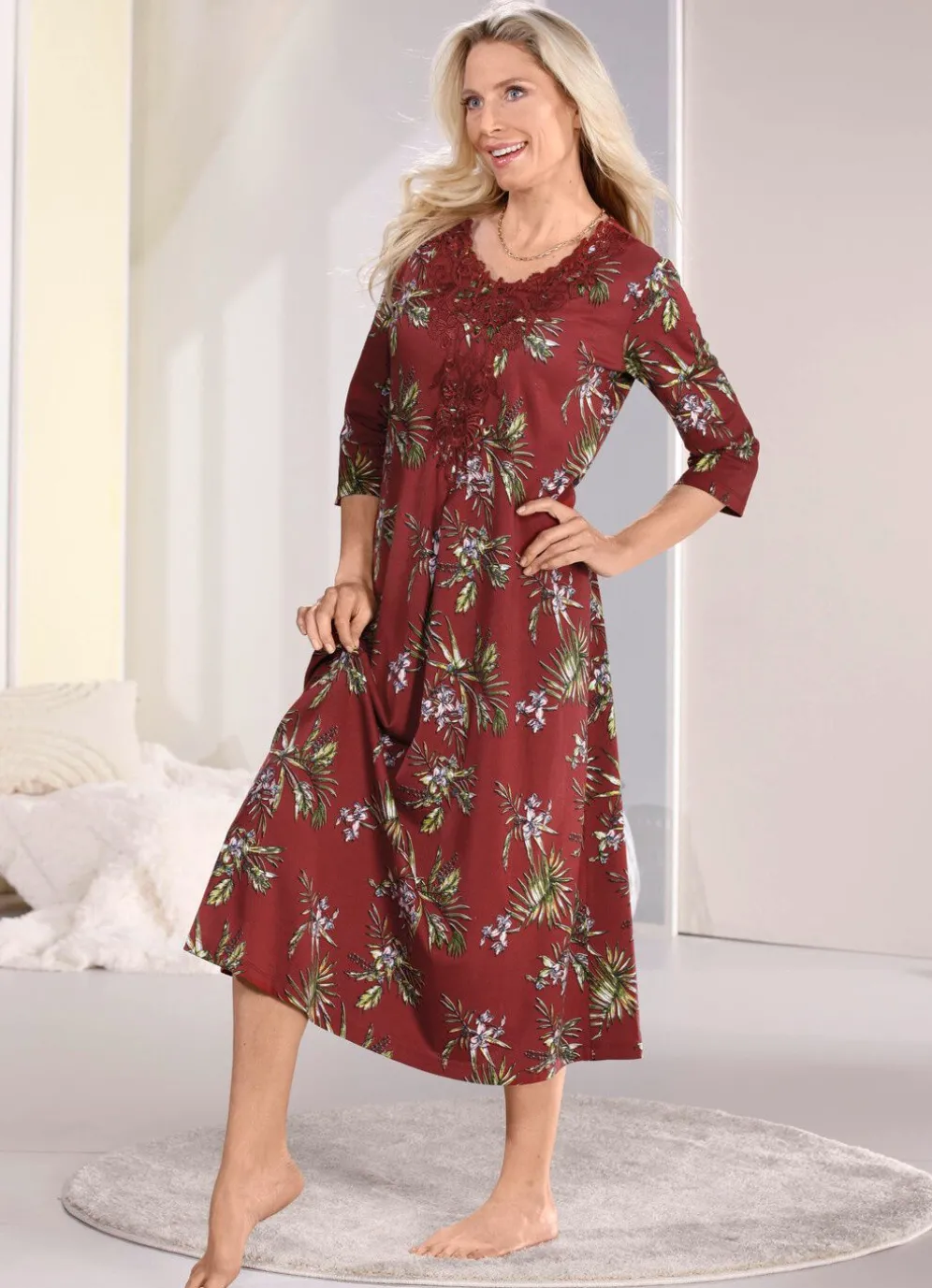 Knöchellanges „Laurina”-Nachthemd, mit großzügiger Motivspitze, Raffungen im