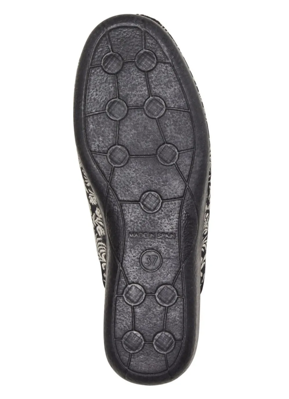„Laurina“-Pantoffel aus Textil mit Blumen-Stickerei in Ecru: Warmfutter und Decksohlenbezug aus reiner Schurwolle, leichte Gummi-Laufsohle sowie 20 mm Keilabsatz