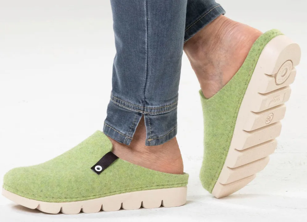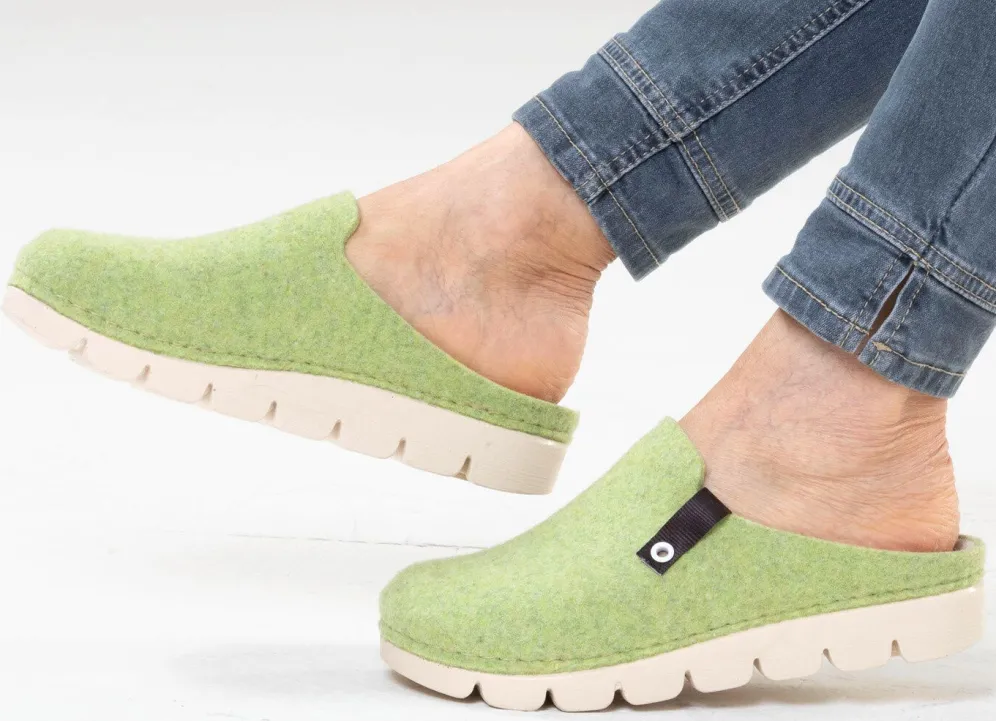 Trendige Hausschuhe von Laurina, aus Filzmaterial: Weite G, anatomisches, gepolstertes Filz-Fußbett, leichte PU-Profilsohle mit flachem Keilabsatz