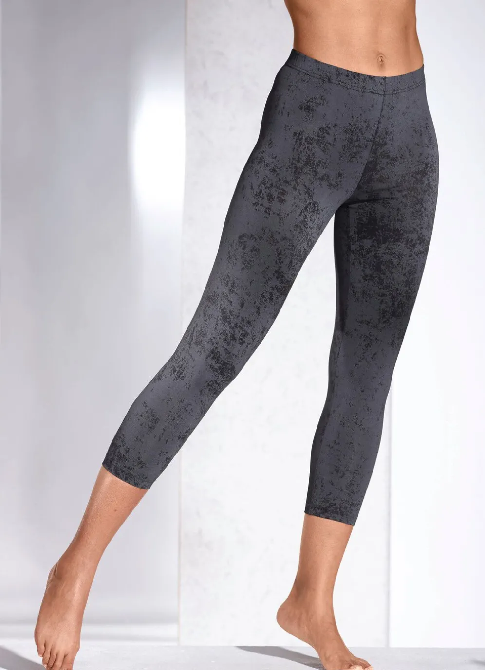 7/8-Leggings von „Plantier” in Anthrazit-Schwarz, mit Gummibund rundum und Batik-Optik.
