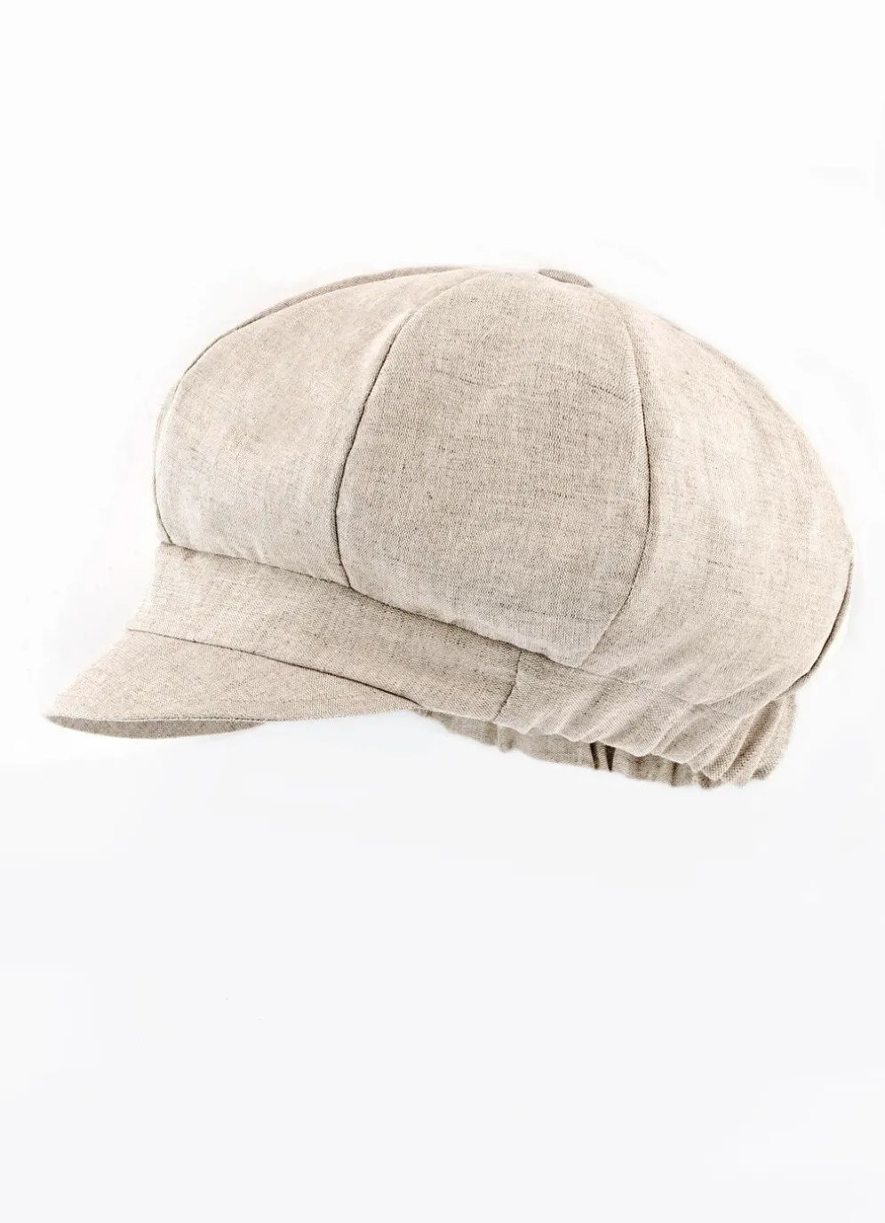 Aktuelle Ballonmütze mit Elastikeinsatz. Die Qualität: weiches Textilmaterial aus 55% Leinen und 45% Baumwolle. In Universalgröße