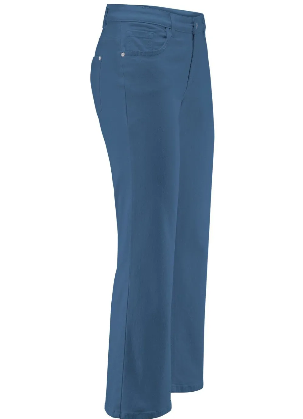 Angesagte, knöchellange Magic-Jeans mit leicht ausgestellter Beinweite für einen lässigen Style: 5-Pocket-Form, elastischer Formbund, Knopf- und Reißverschluss sowie Jeanssattel. Innenbeinlänge ca. 66 cm, Fußweite ab 46 cm.