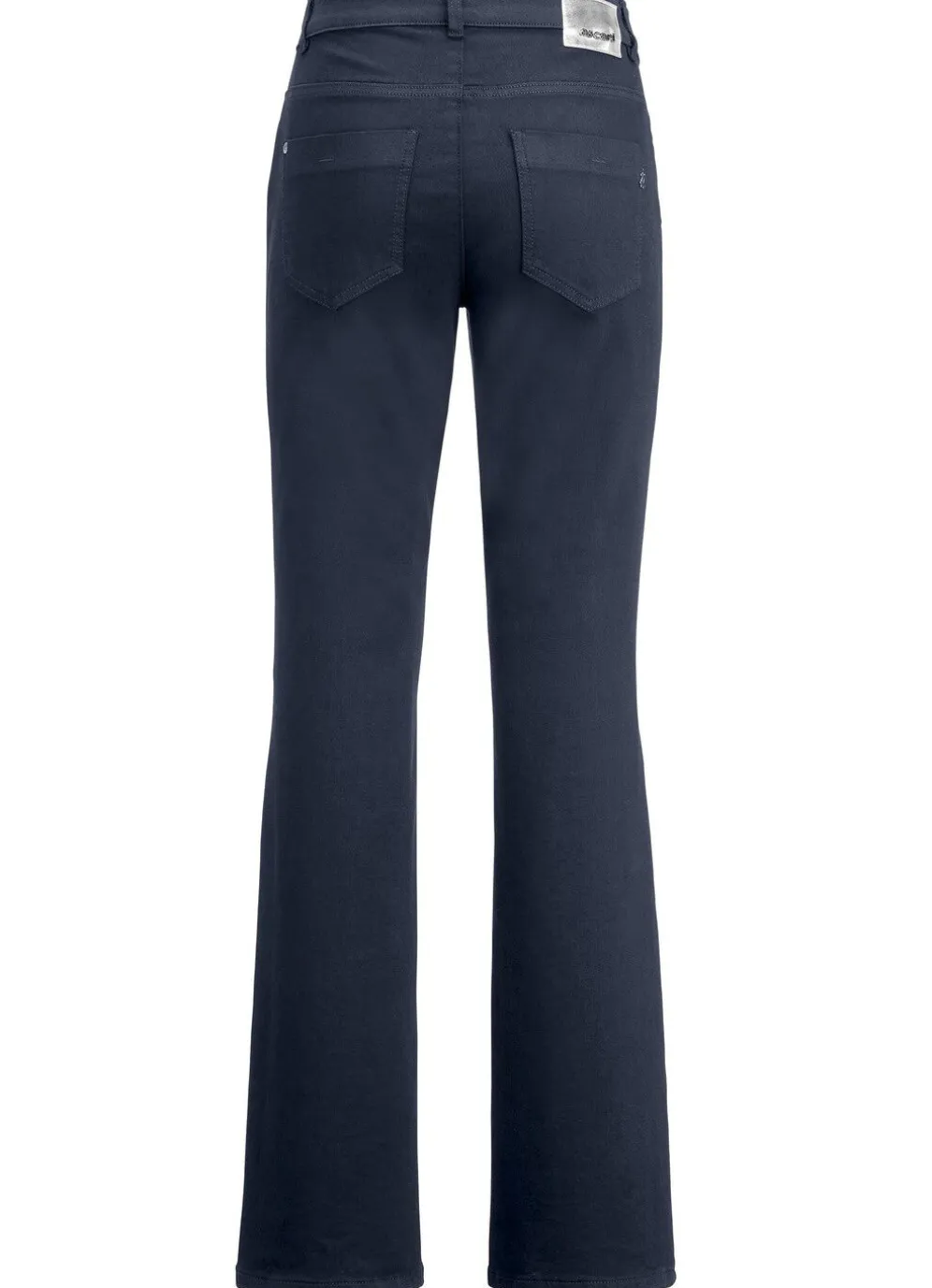 Magic-Jeans mit modisch weiterem Beinverlauf, hohem Stretchanteil und exzellentem Rücksprungverhalten, weshalb sie eine Größe kleiner passt, ohne einzuengen: 5-Pocket-Form, elastischer Bund, Gürtelschlaufen, Knopf- und Reißverschluss, Ziernieten an allen Taschen sowie Jeanssattel. Ohne Gürtel. Innenbeinlänge ca. 79 cm, Fußweite ab 46 cm.