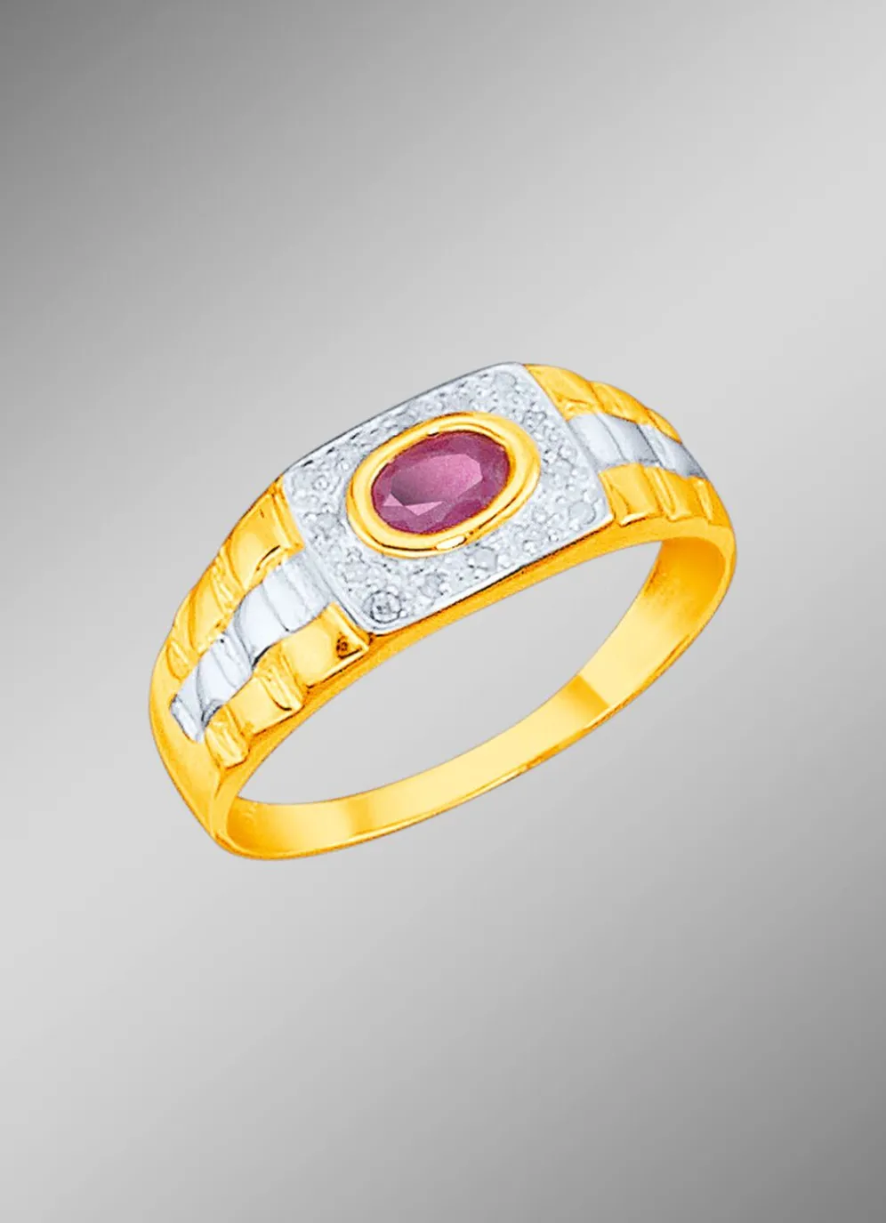 Massiver Partnerring mit 14 Diamanten und echtem Rubin