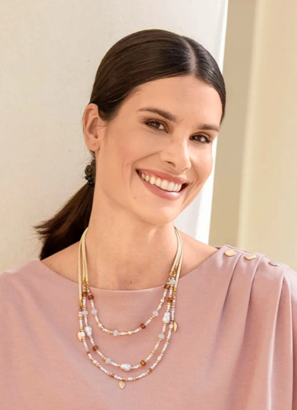 Mehrreihige Halskette mit Süßwasser-Zuchtperlen