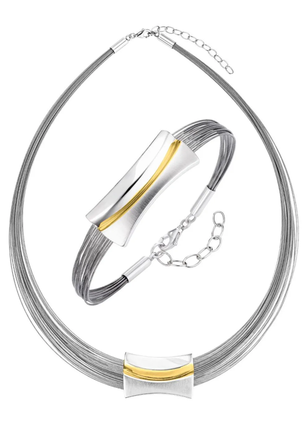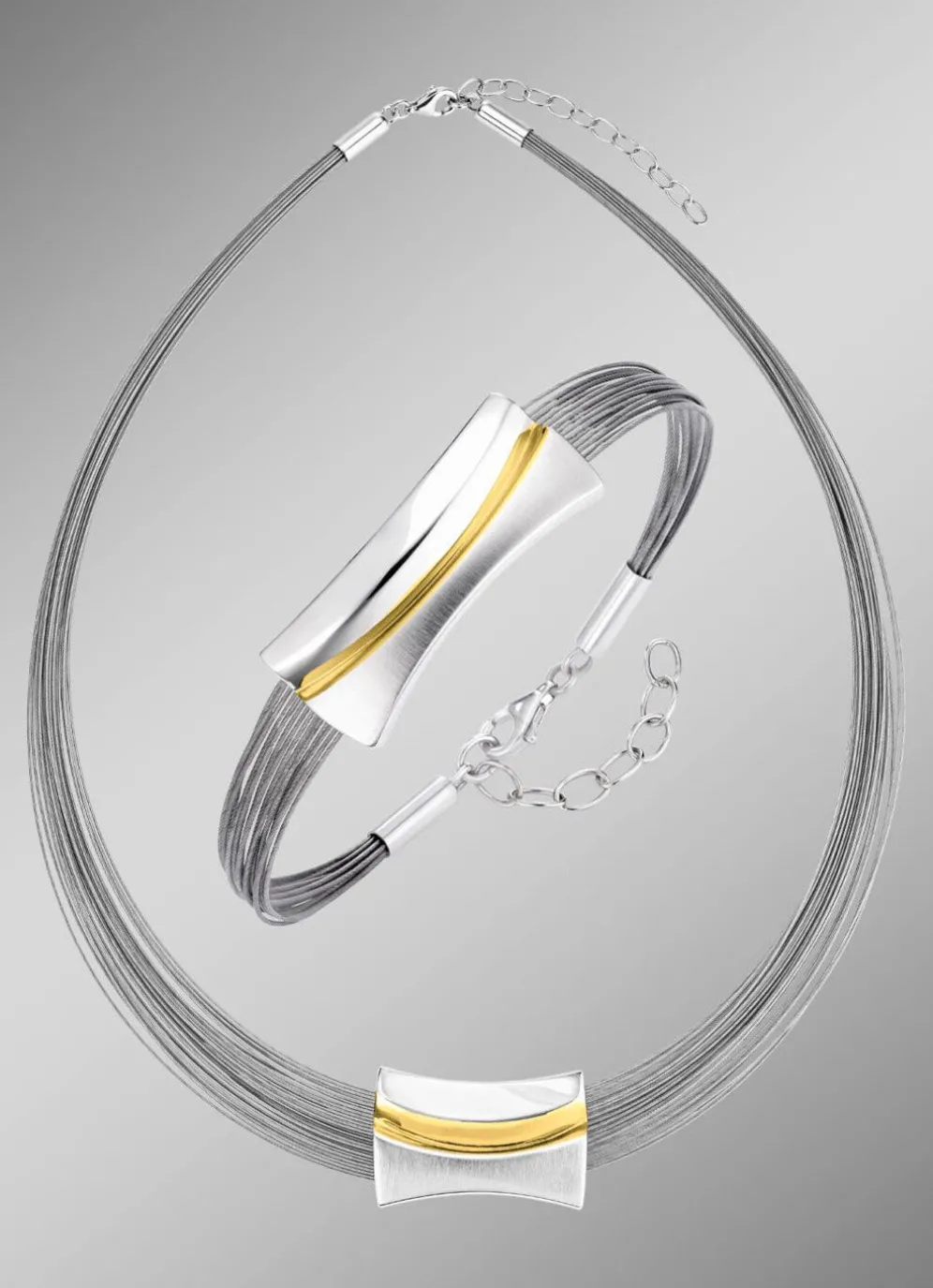 Moderne Garnitur in Bicolor aus Silber 925/- fein und Stahl