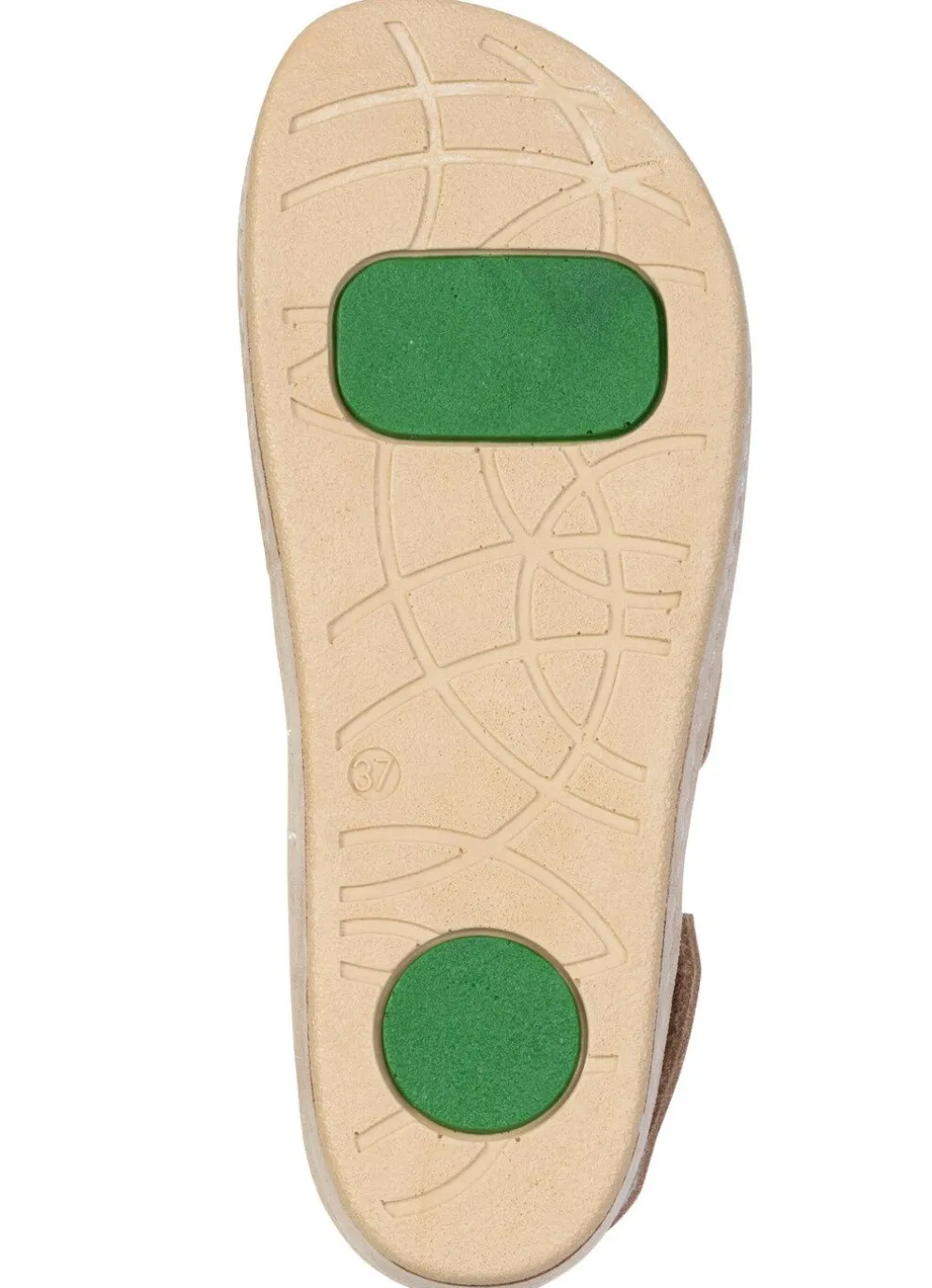 Sandalen aus weichem Veloursleder mit drei verstellbaren Klettspangen: Weite H, Lederfutter, herausnehmbares Lederfußbett, leichte PU-Laufsohle sowie lederbezogener 25 mm Keilabsatz