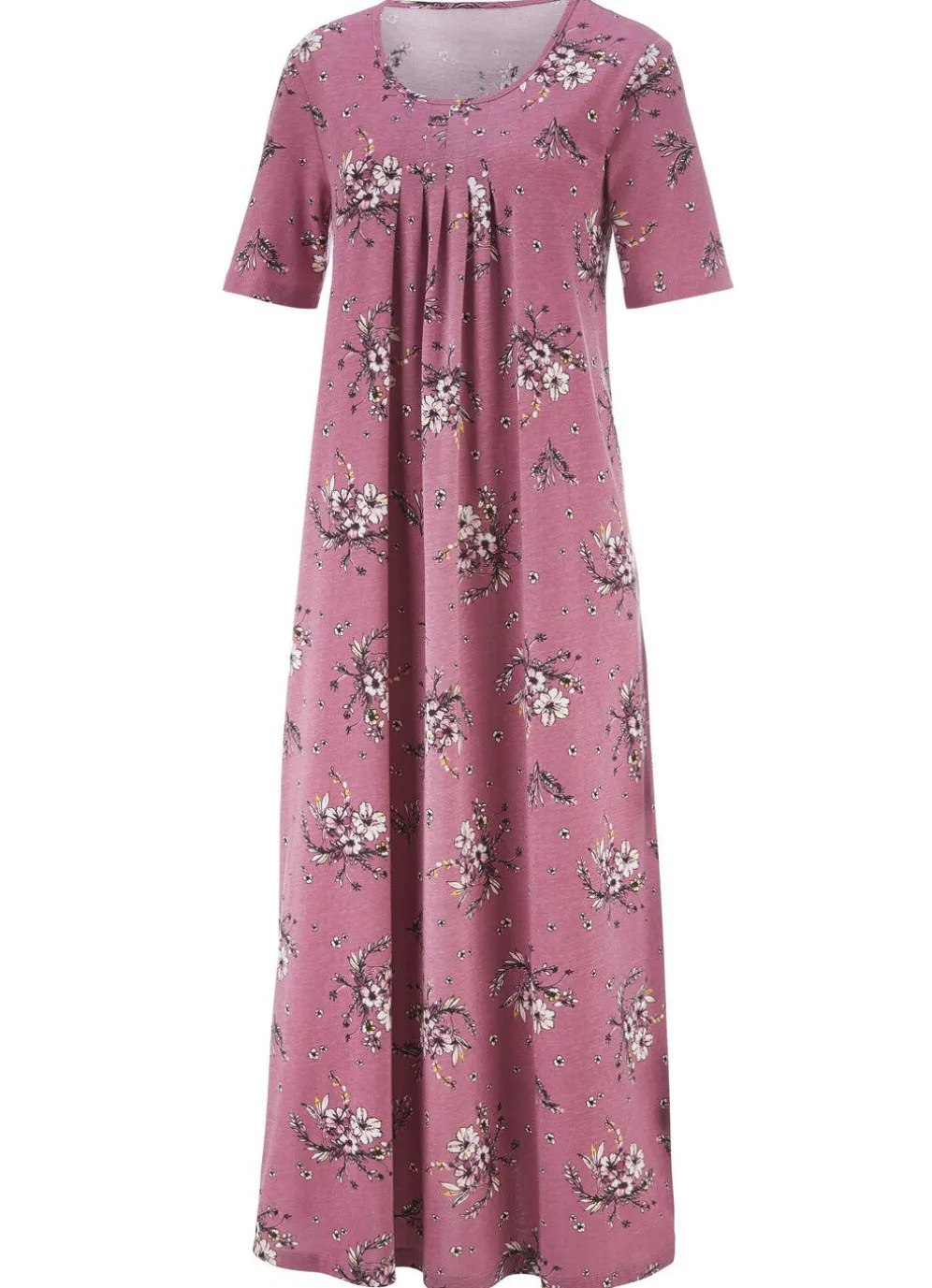 Schönes, knöchellanges Nachthemd, mit Absteppung und Faltenlegung vorne sowie kurzen Ärmeln.