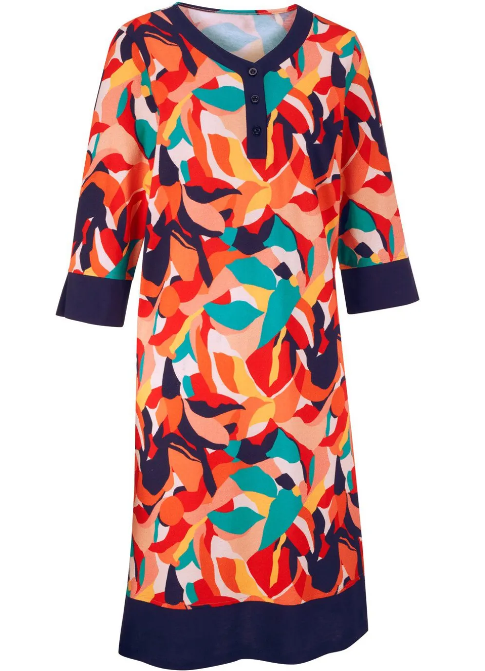 Apartes, kürzer geschnittenes Nachthemd in Marine-Orange-Bunt! Mit Einfassung am Halsausschnitt,