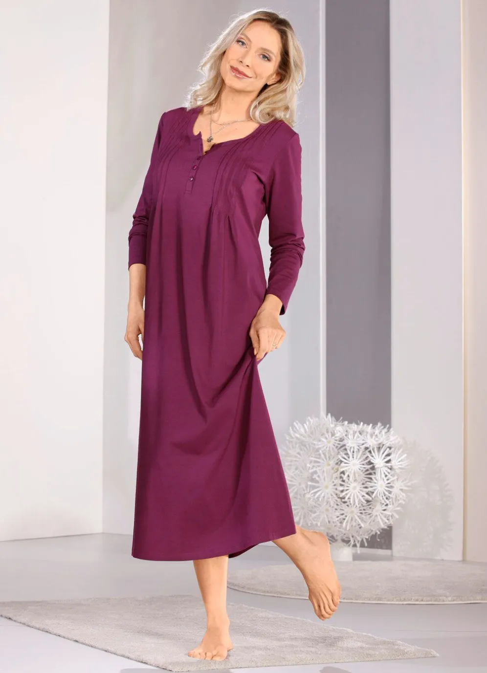 Wunderbares, knöchellanges Nachthemd mit Knopfleiste, aufwendiger Biesenverarbeitung