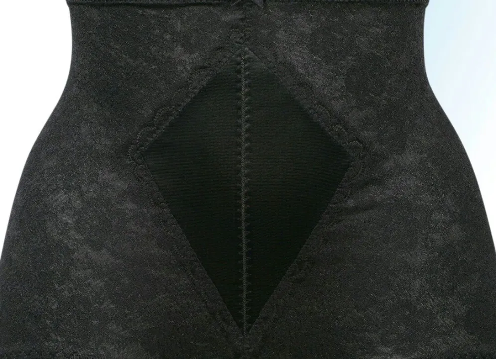 Miederhose von „Naturana“, mit Jacquarddessin, glänzendem, verstärktem Vorderteileinsatz sowie Baumwolleinlage im Schritt.