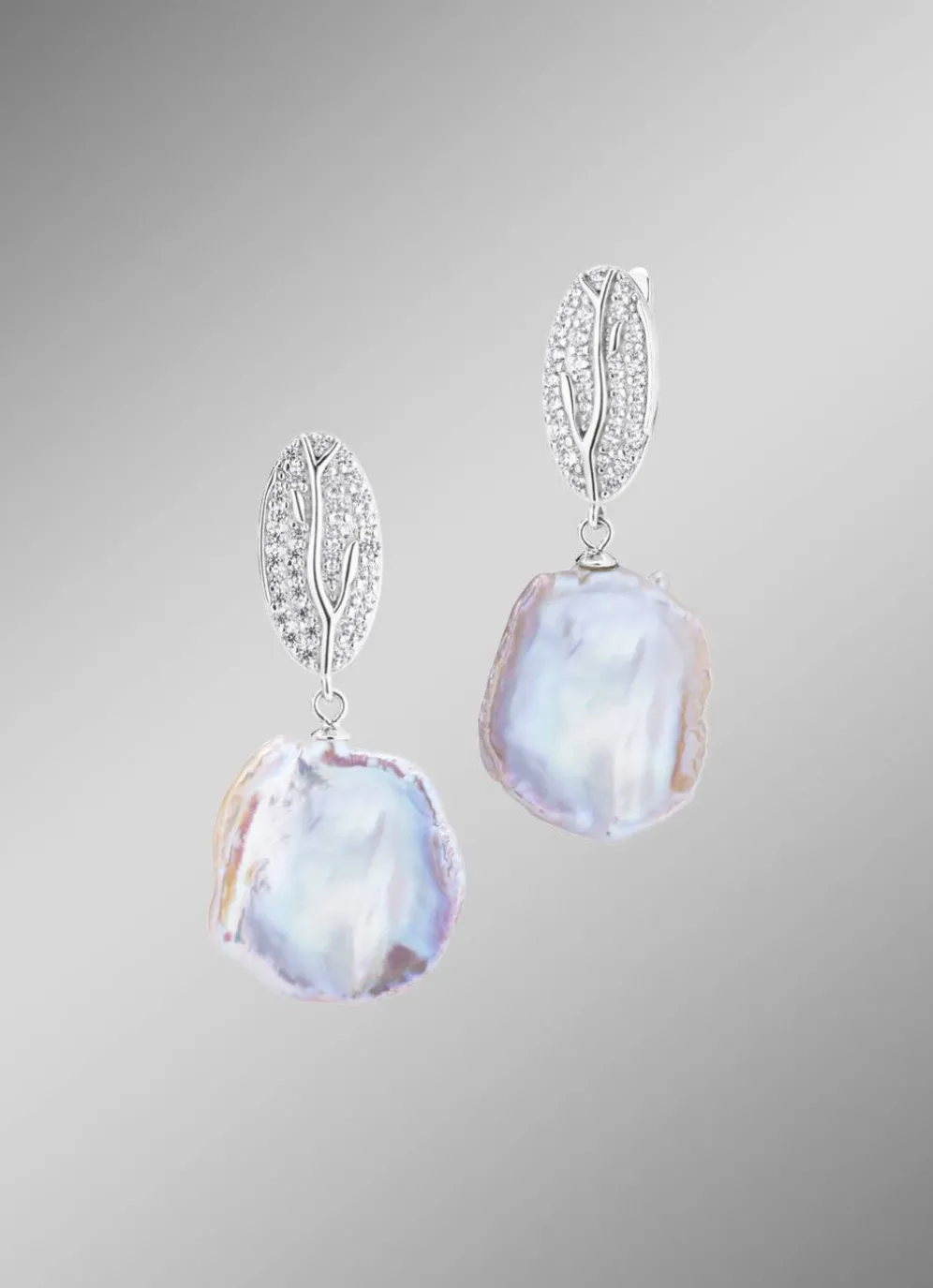 Ohrringe mit Keshi-Perlen und synth. Zirkonia