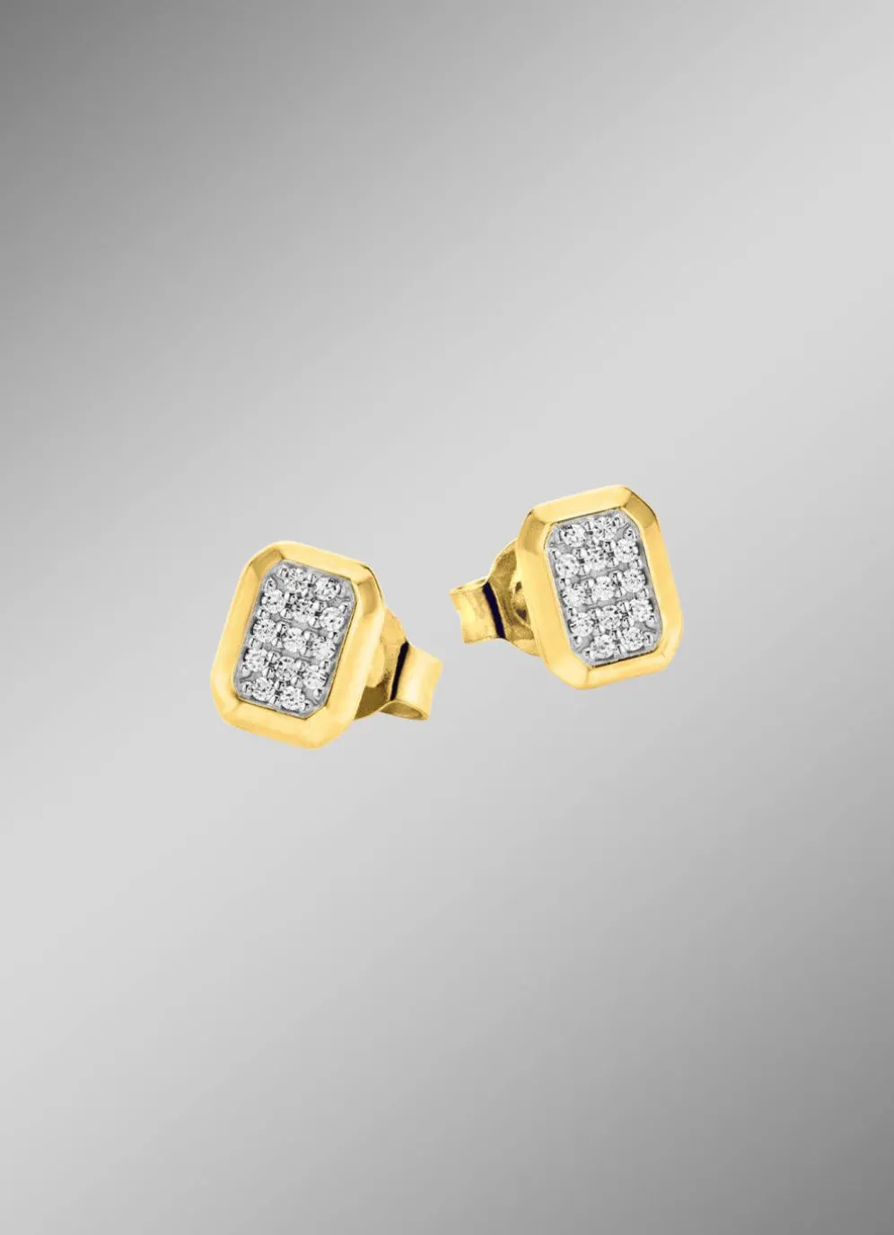 Entdecken Sie funkelnden Charme mit diesen eleganten Ohrsteckern! Gefertigt aus edlem Gold 375/- fein begeistern sie durch ihr glänzendes Finish und ihre zarten Maße von 5 x 7 mm. 26 Brillanten in Weiß (zusammen ca. 0,10 ct., Reinheit: Piqué 2) verleihen den Ohrsteckern ein unvergleichliches Strahlen und machen sie zum perfekten Begleiter für jeden Anlass.