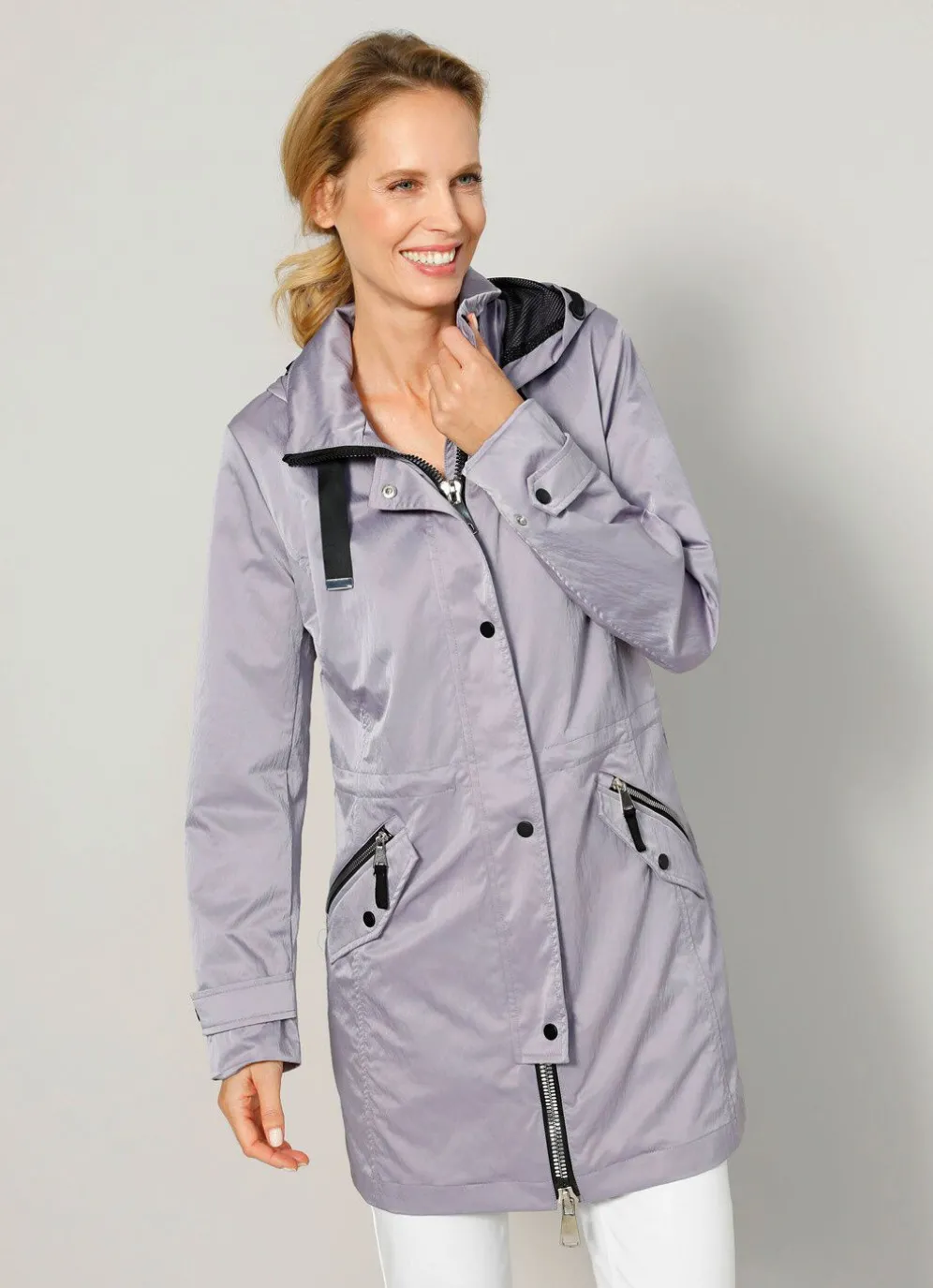 Dieser Parka ist ein echtes Highlight. Das Modell ist mit abnehmbarer Kapuze, Stehkragen, langen Ärmeln mit Knopf und Riegel, Pattentaschen sowie einer Innentasche ausgestattet. Länge ca. 88 cm, Kurz-Gr. ca. 82 cm. Hergestellt aus pflegeleichtem Material.