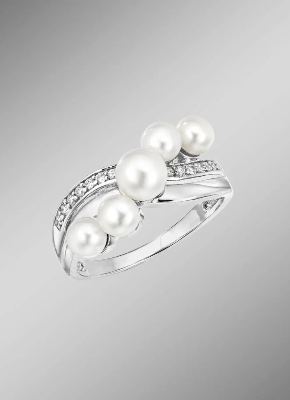Perlenglanz und strahlende Eleganz: Damenring mit Süßwasser-Zuchtperlen