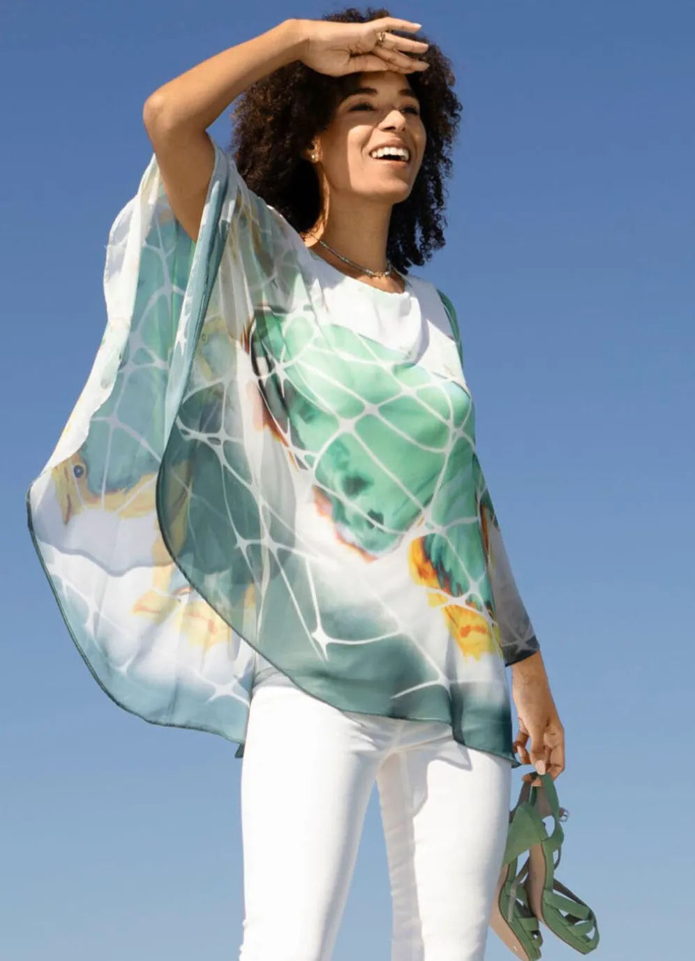 Poncho-Tunika mit farbbrillantem Inkjet-Druck