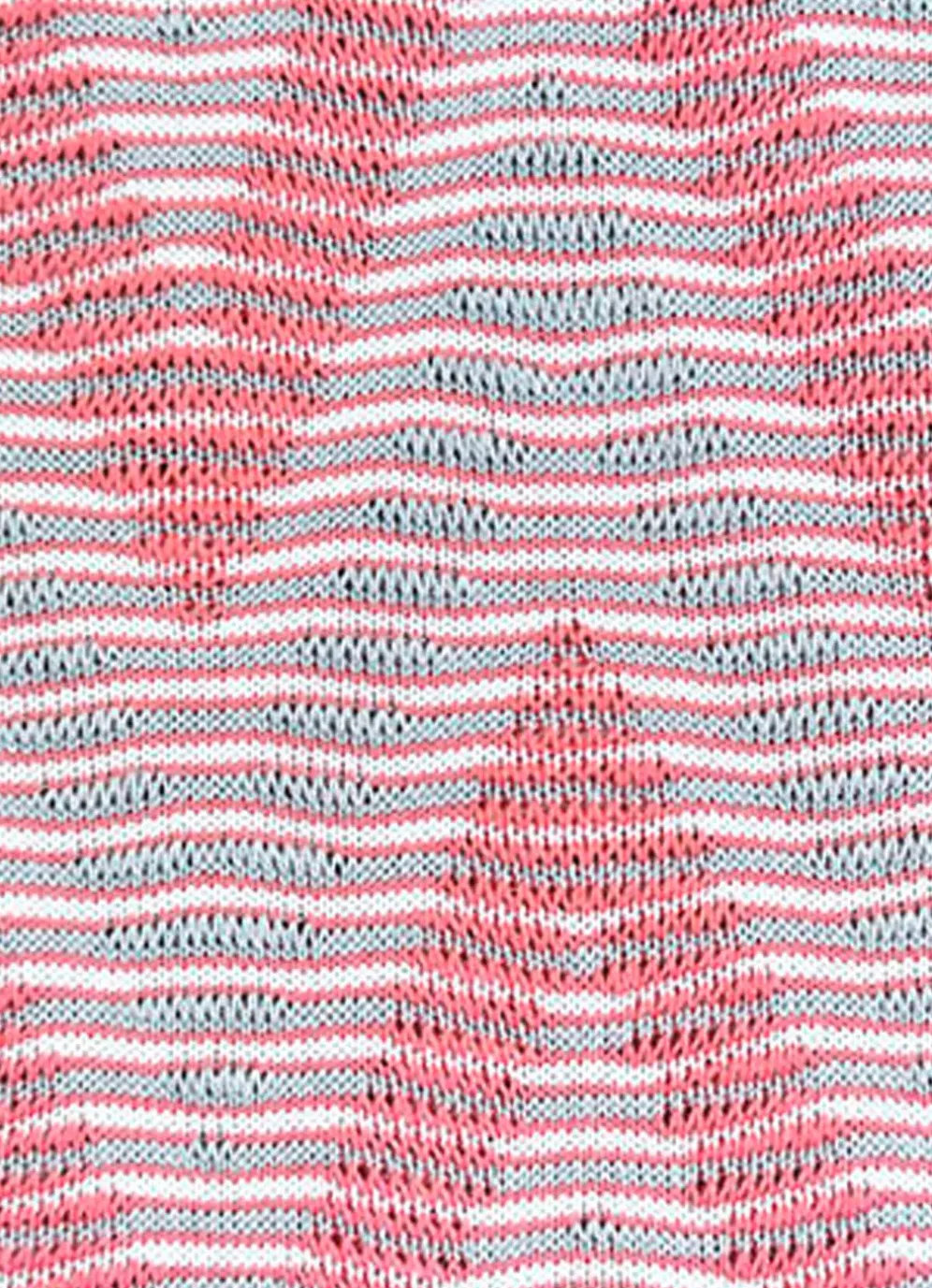 Interessanter Pulli in Hummer-Ecru-Grau, mit feiner Streifen- und Zackenoptik in edlem Strukturmix, überschnittener Schulterpartie und Streifendessin am U-Boot-Ausschnitt sowie den Abschlüssen der kurzen Ärmel.