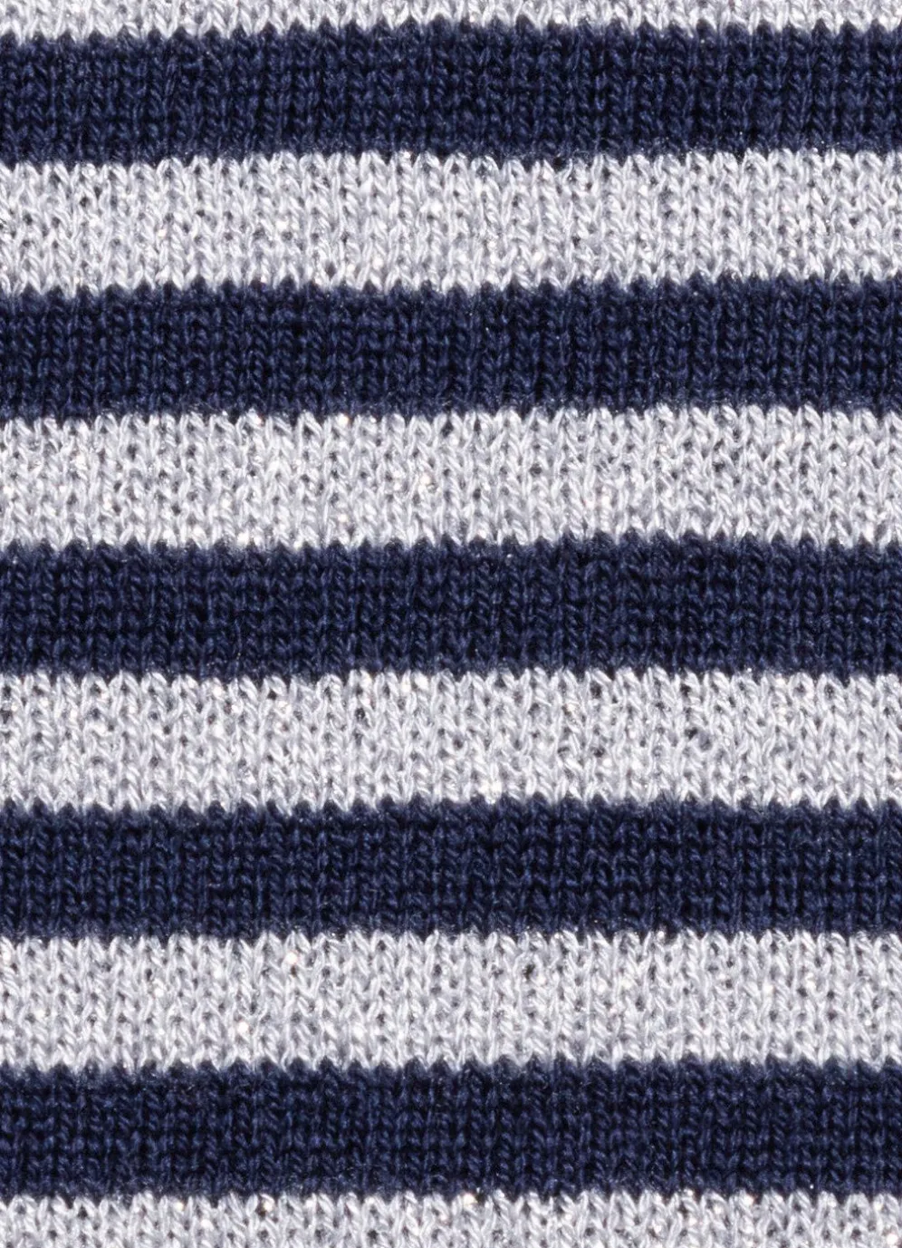 Raffinierter Pullover mit U-Boot-Ausschnitt, Streifendessin mit Glitzereffekt allover, langen, überschnittenen Ärmeln sowie rollierten Abschlüssen.