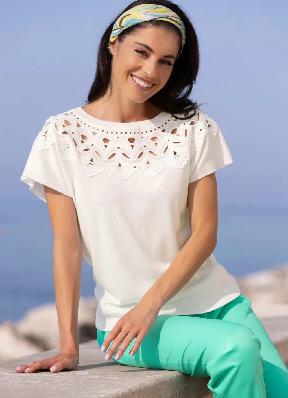 Pullover in Materialmix mit Spitze