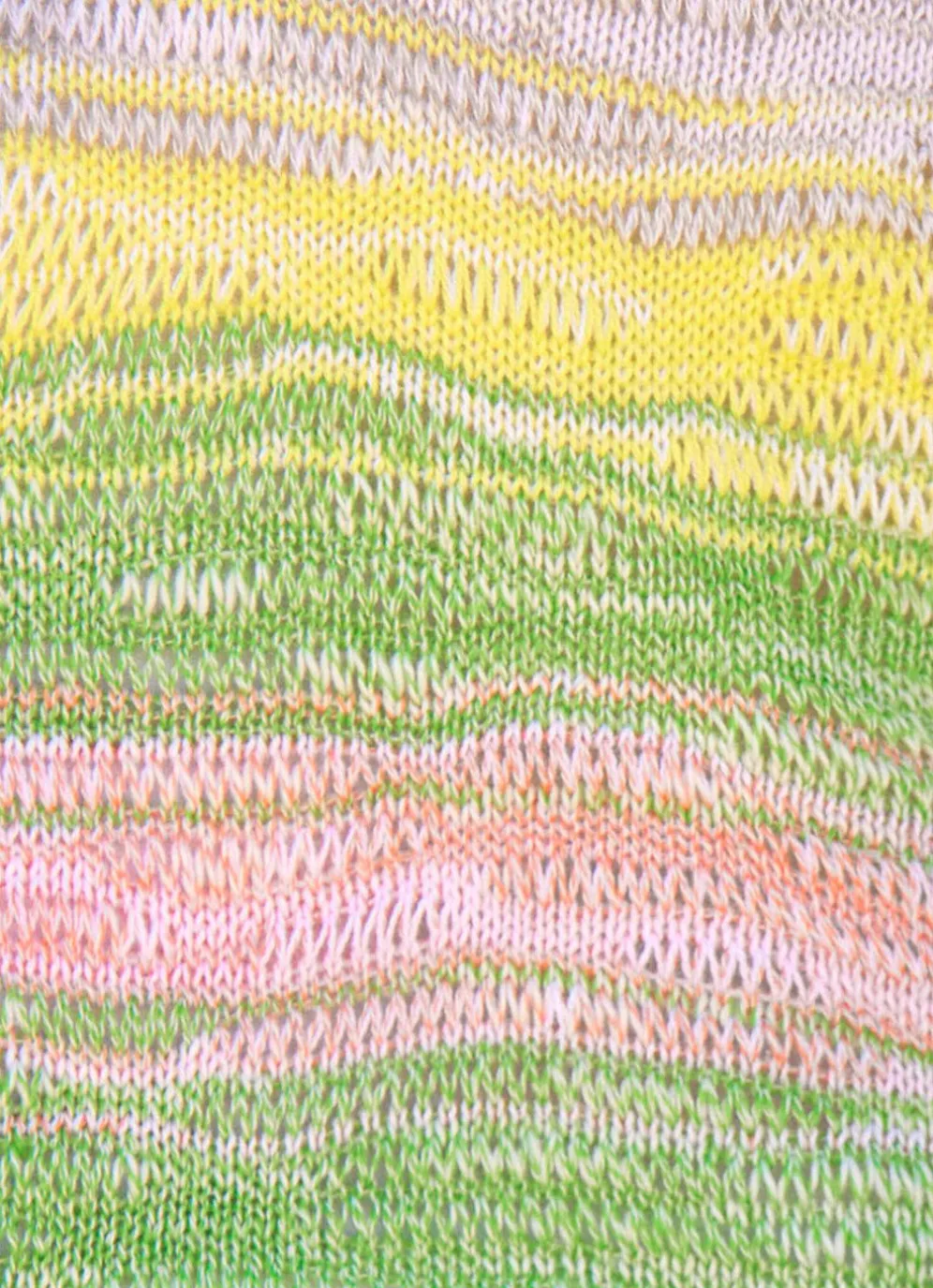 Hübscher Pullover in Grün-Gelb-Multicolor, mit Strukturmuster im Wellendessin, farbenfrohem Farbverlauf und Melangeoptik allover, Rippenbündchen und Rollkante am runden Halsausschnitt und den Ärmeln in modischer Länge sowie geripptem Saumabschluss.