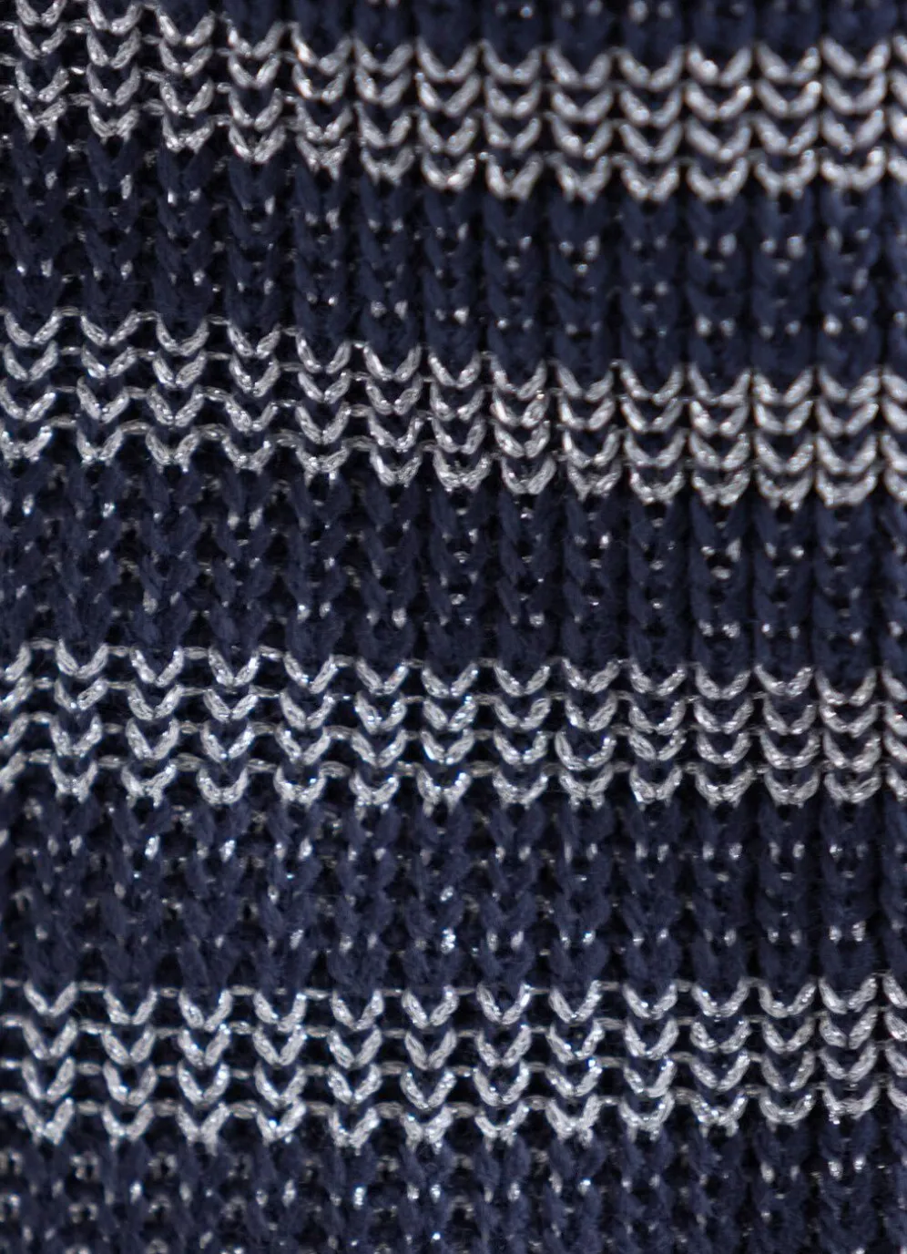 Marine-Silberfarbener Pullover mit flachem Halsausschnitt, edlen, silberfarbenen Glitzereffekten allover, langen Raglanärmeln sowie Rippenabschlüssen.