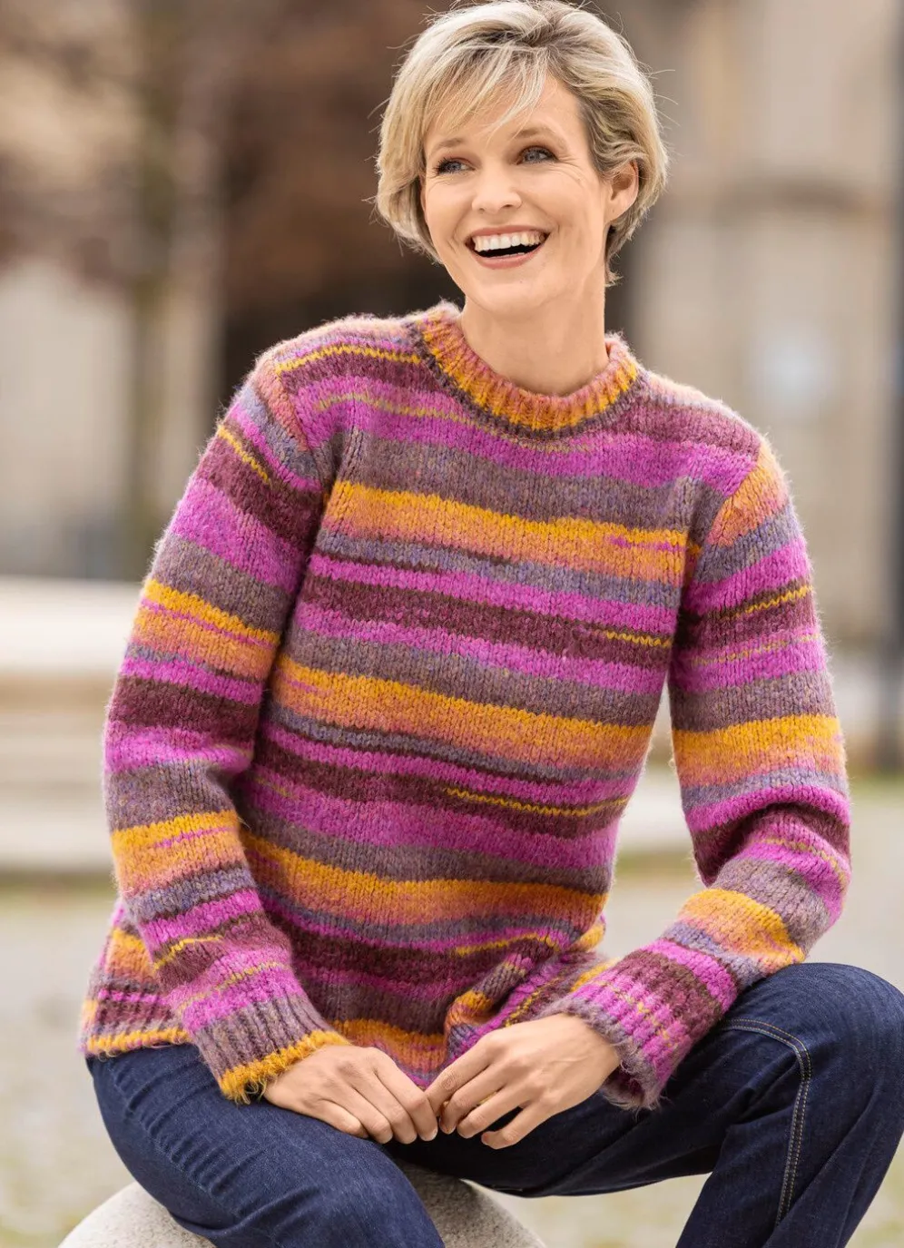 Jedes Teil ein Unikat! Ein topmodischer Hingucker ist dieser Pullover in Multicolor mit rundem Halsausschnitt, tollem Farbverlauf allover, langen Ärmeln sowie Rippenbundabschlüssen.