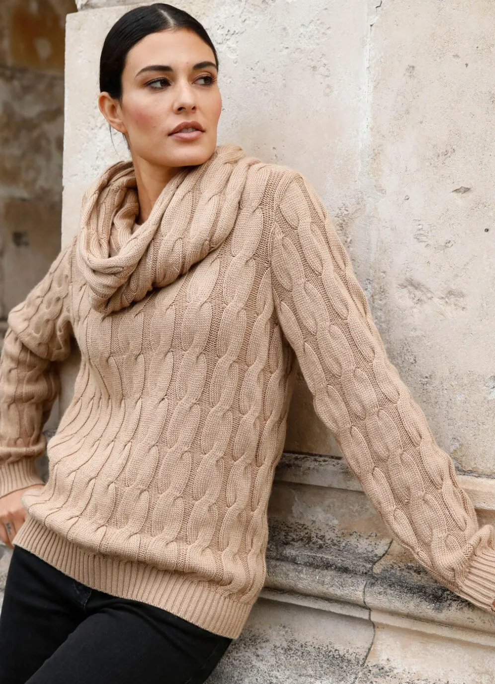 Pullover mit Loop und Zopfstruktur