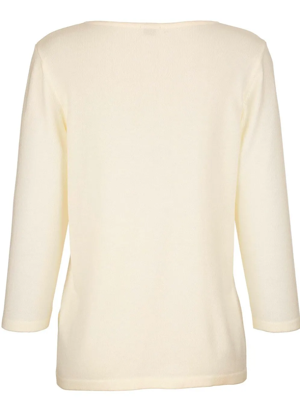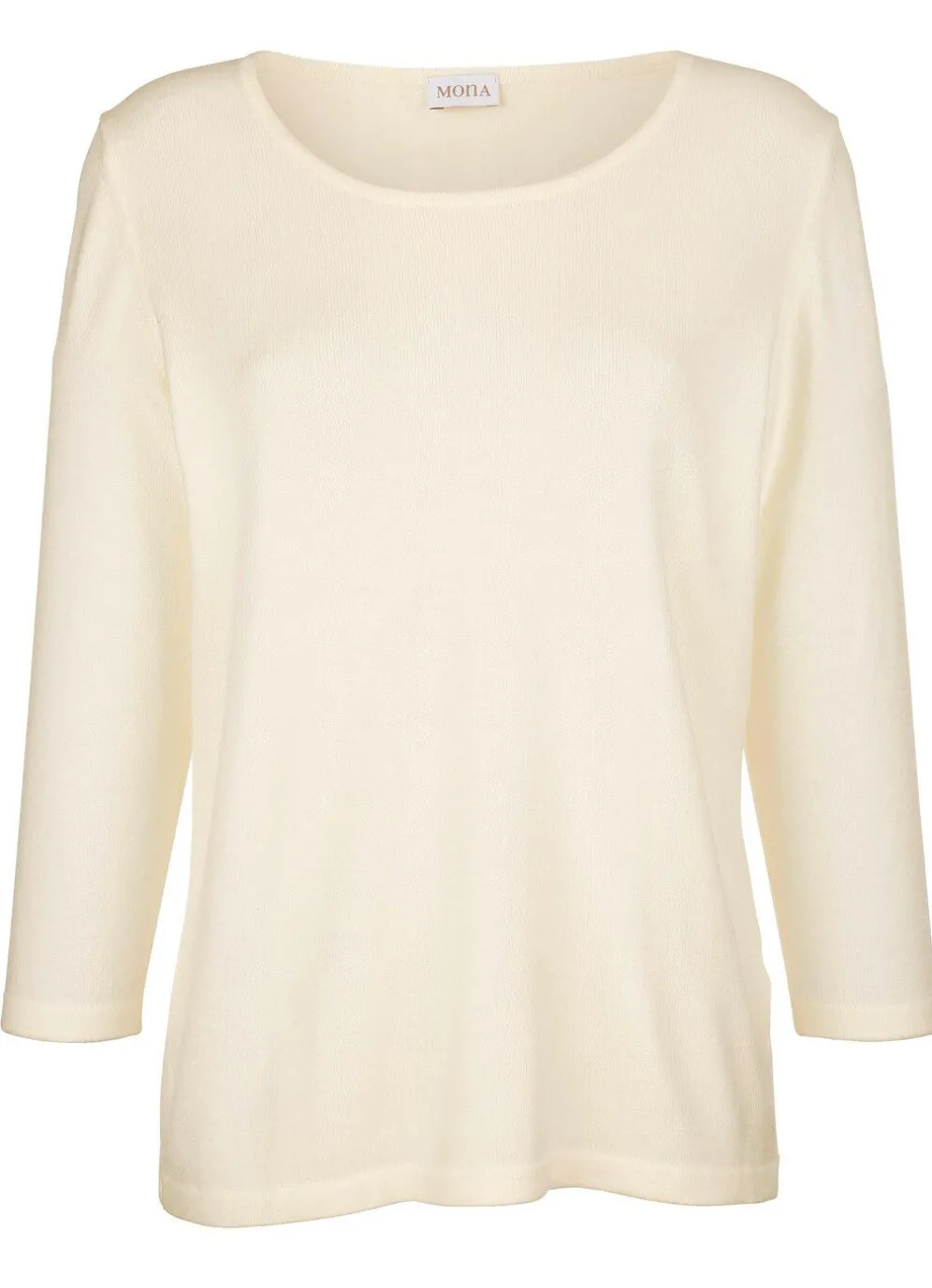 Pullover: Rundhals, 3/4-lange Ärmel, leicht tailliert, weich fließend.
