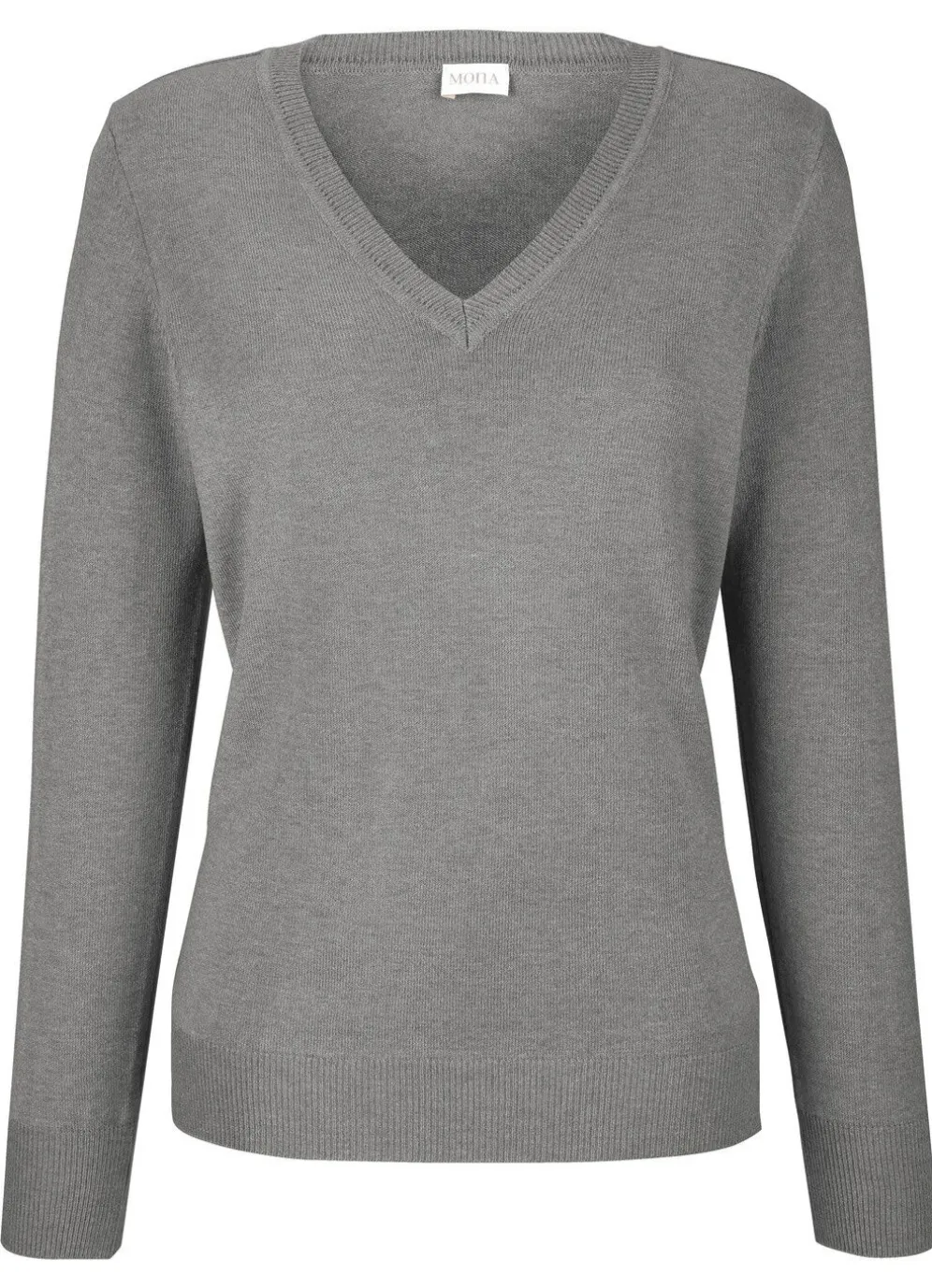 Fließend weicher Pullover mit V-Ausschnitt, langen Ärmeln sowie Bündchenabschlüssen.