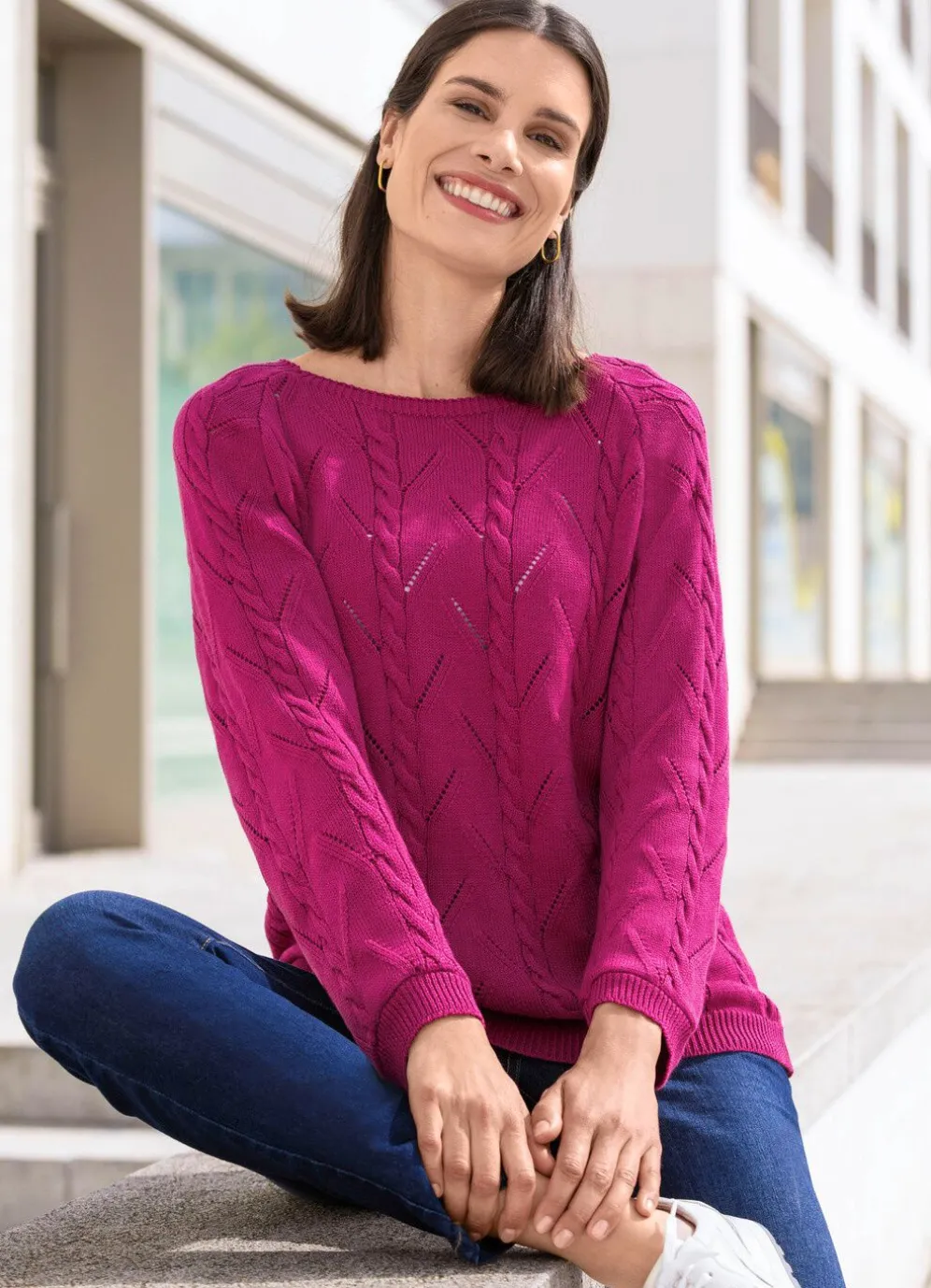 Pullover mit Zopfstrukturen und Ajourmustermix