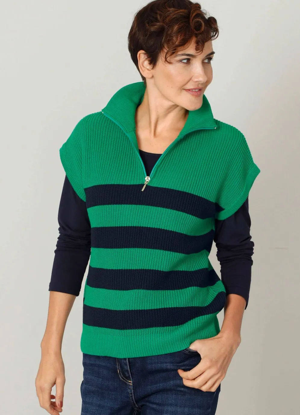 Pullunder: Kragen durch Reißverschluss ganz schließbar, Patentstrickabschlüsse, Blockringel.