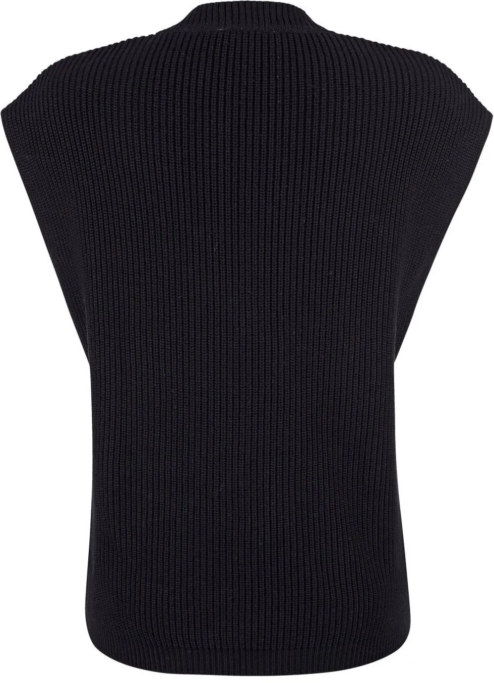 Individueller Pullunder in leicht taillierter Form mit überschnittener Schulterpartie sowie V-Ausschnitt.