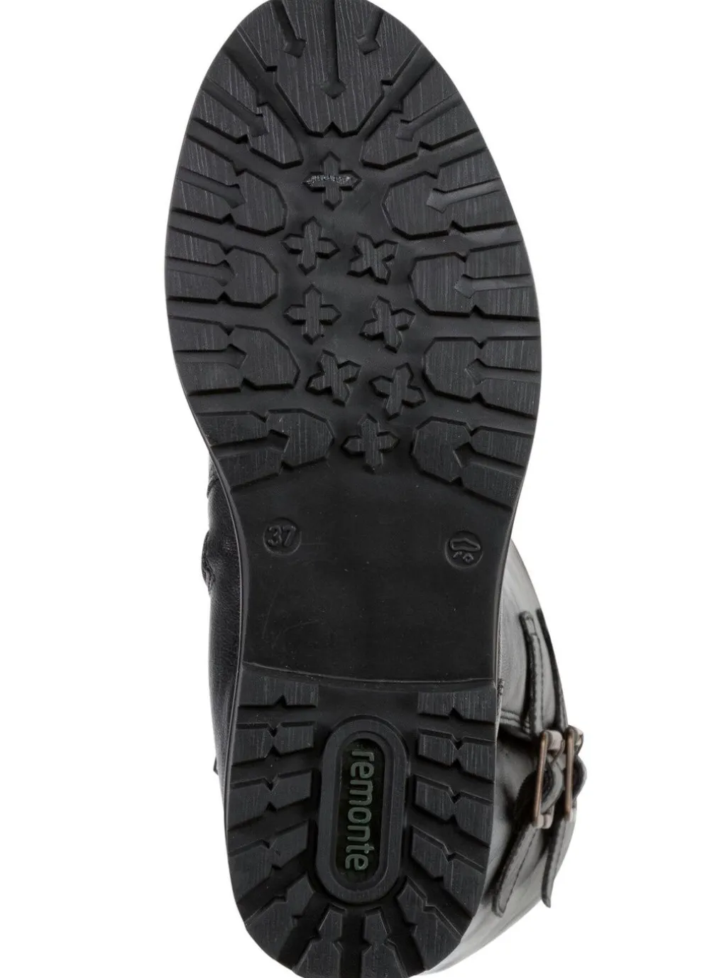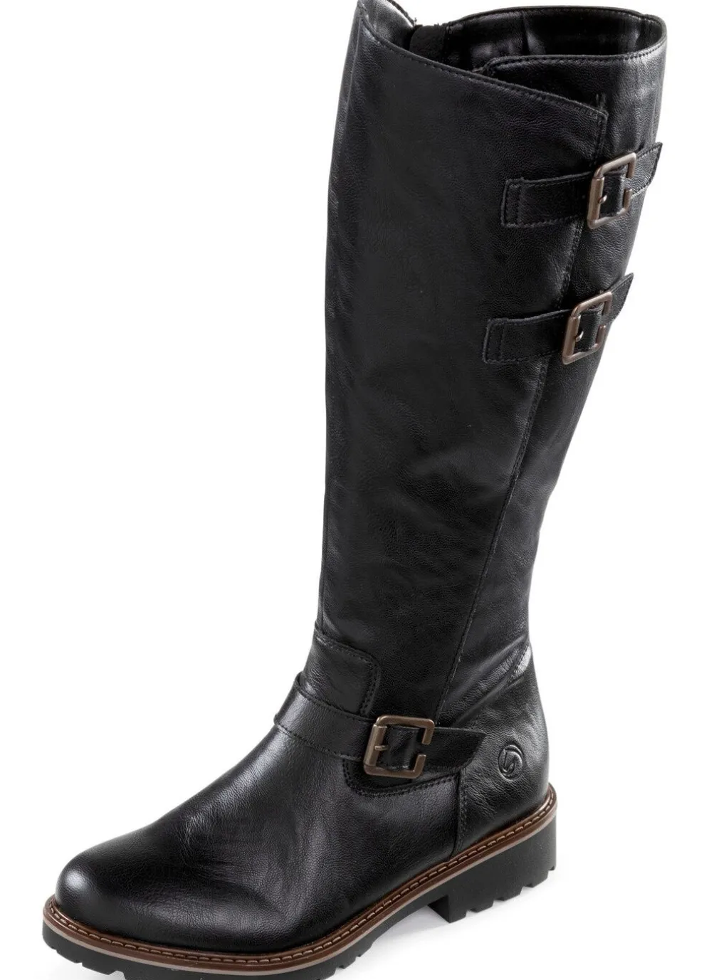 Stiefel aus hochwertigem Synthetik mit Narben-Struktur: zwei verstellbare Spangen mit verdeckten Gummizügen zur Weiten-Regulierung. Weite G, Zierschnalle, Innenreißverschluss, molliges Warmfutter aus echtem Lammfell und Plüschmaterial aus 80% Polyacryl und 20% Polyester, herausnehmbare Decksohle, TR-Profilsohle sowie 20 mm Absatz. Schafthöhe ca. 37 cm, Wadenweite ca. 38-42 cm