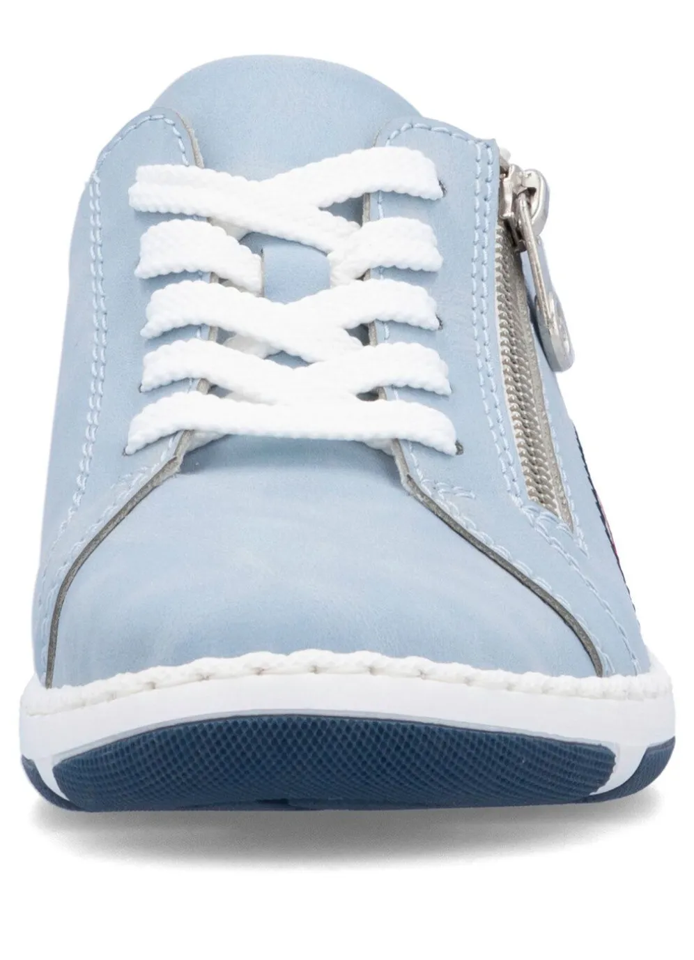 Sneaker in Himmelblau aus Synthetik, mit seitlicher Zier-Naht: Weite H, Schnürung und Seitenreißverschluss, Textilfutter, herausnehmbares Fußbett, leichte TR-Profilsohle sowie 15 mm Keilabsatz