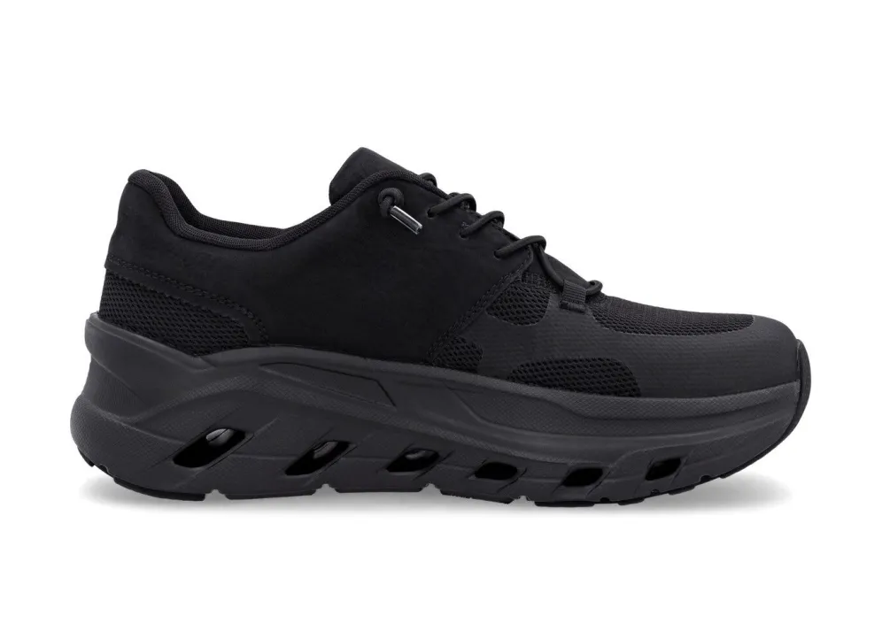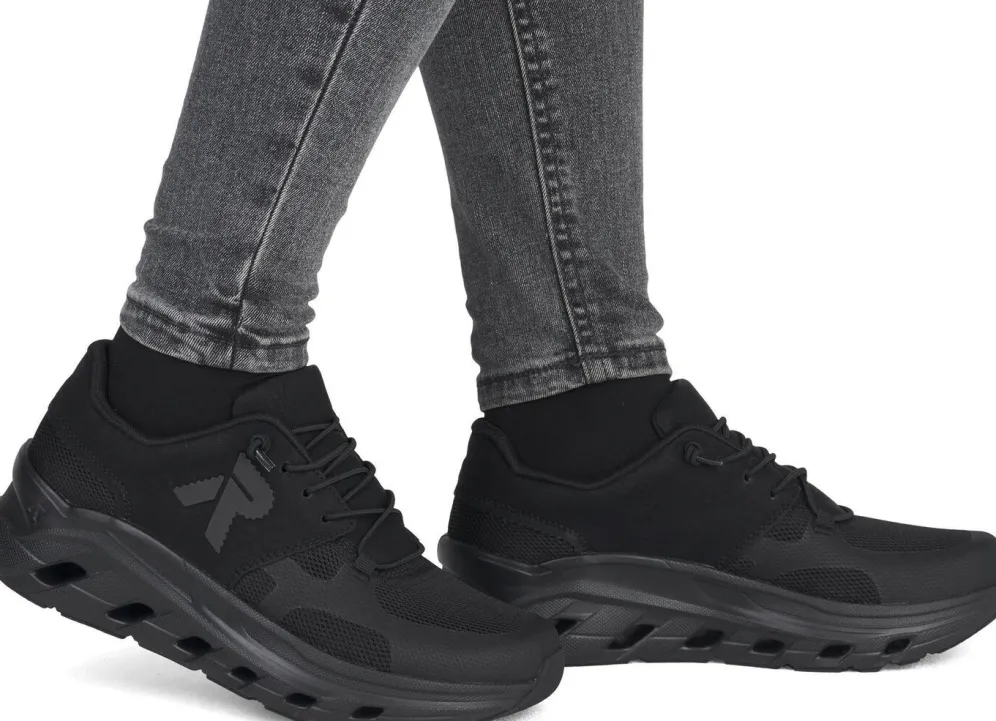 Sportive Sneaker aus teilweise beschichtetem Meshmaterial und Synthetik, mit elastischer Zierschnürung: Weite G, Textilfutter, herausnehmbares Fußbett, superleichte EVA-Plateausohle mit luftigen Durchbrüchen sowie 20 mm Keilabsatz
