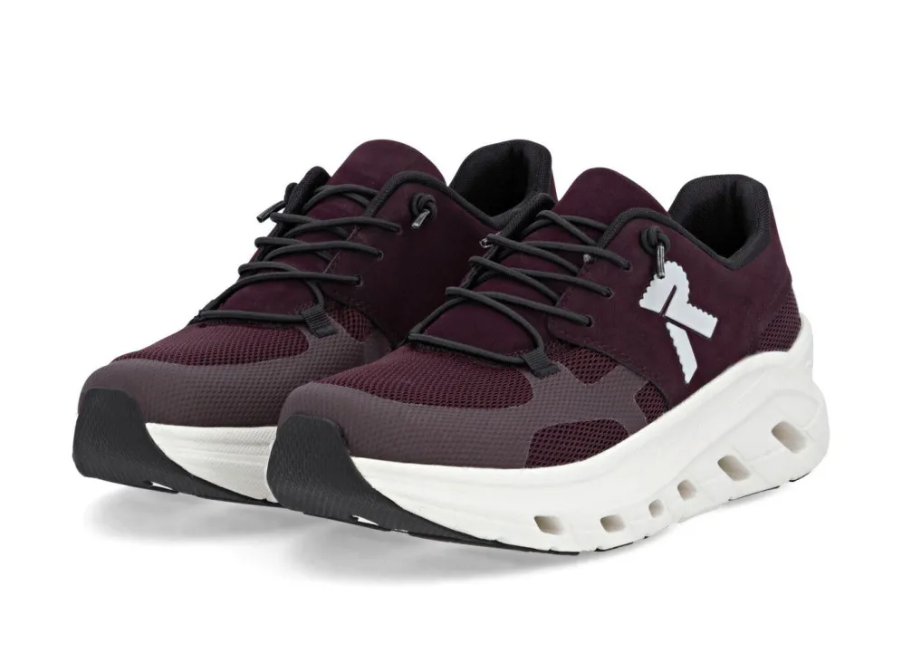 Sportive Sneaker aus teilweise beschichtetem Meshmaterial und Synthetik, mit elastischer Zierschnürung: Weite G, Textilfutter, herausnehmbares Fußbett, superleichte EVA-Plateausohle mit luftigen Durchbrüchen sowie 20 mm Keilabsatz