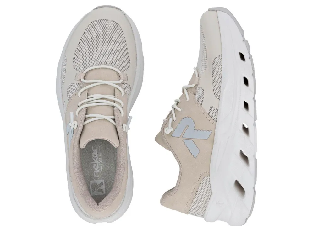 Sportive Sneaker aus teilweise beschichtetem Meshmaterial und Synthetik, mit elastischer Zierschnürung: Weite G, Textilfutter, herausnehmbares Fußbett, superleichte EVA-Plateausohle mit luftigen Durchbrüchen sowie 20 mm Keilabsatz