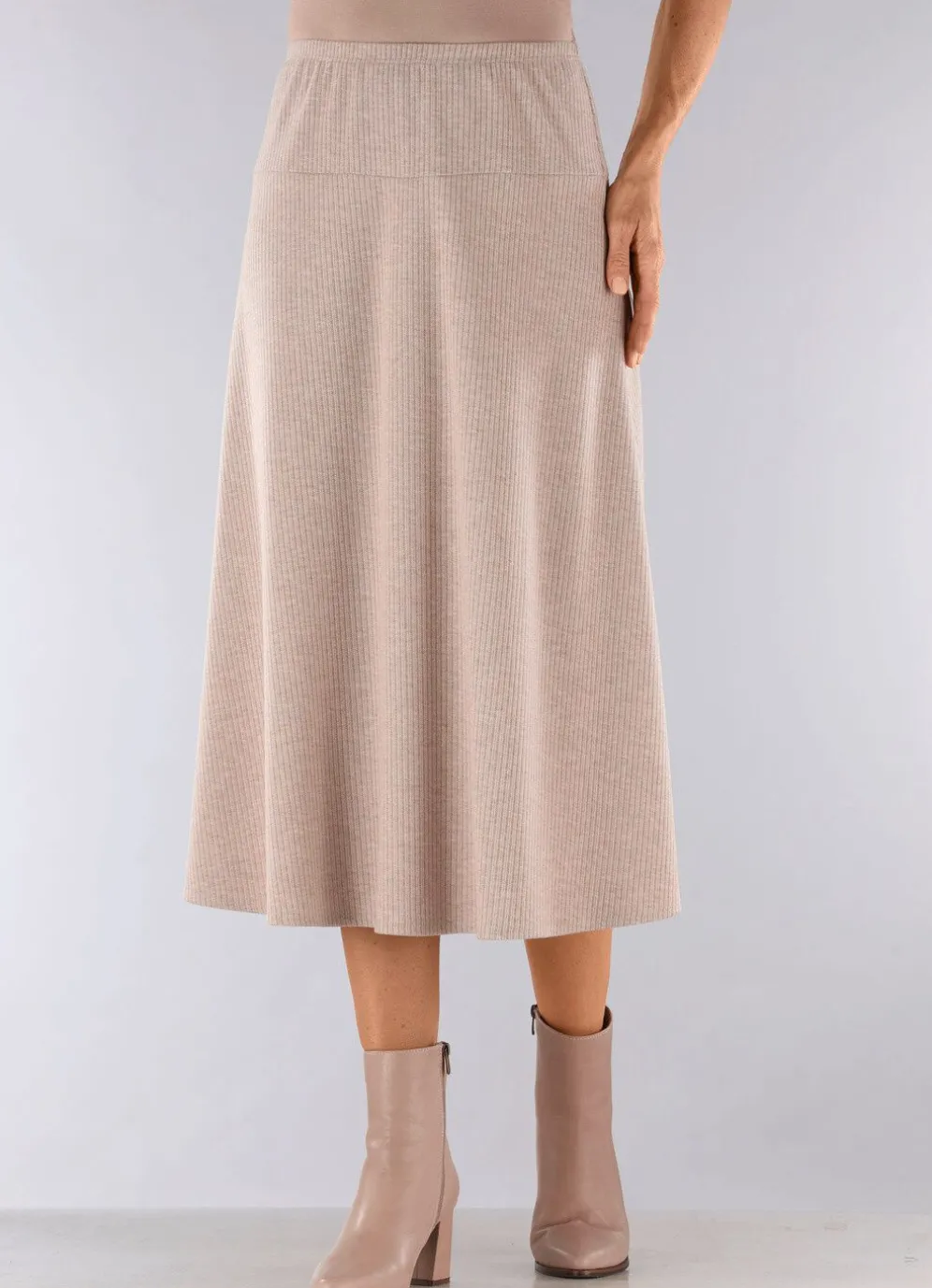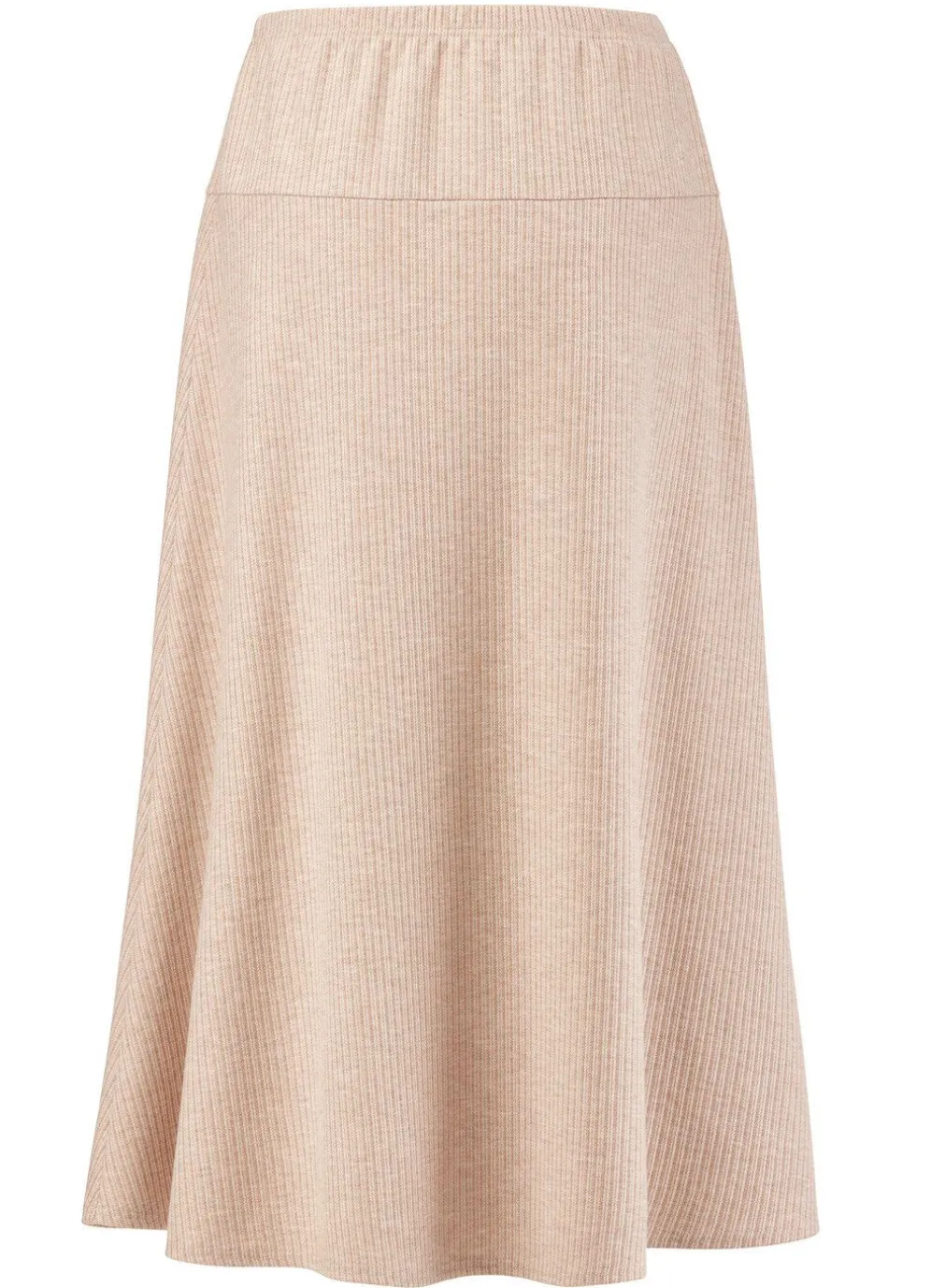 Attraktiver Rock von Stilschmiede in bequemer Schlupfform mit schmalem Dehnbund sowie figurgünstiger, breiter Passe rundum. Die leichte Tellerform verleiht diesem Modell seine duftige Weite. Gesamtlänge ca. 78 cm, bei K-Gr. ca. 72 cm.