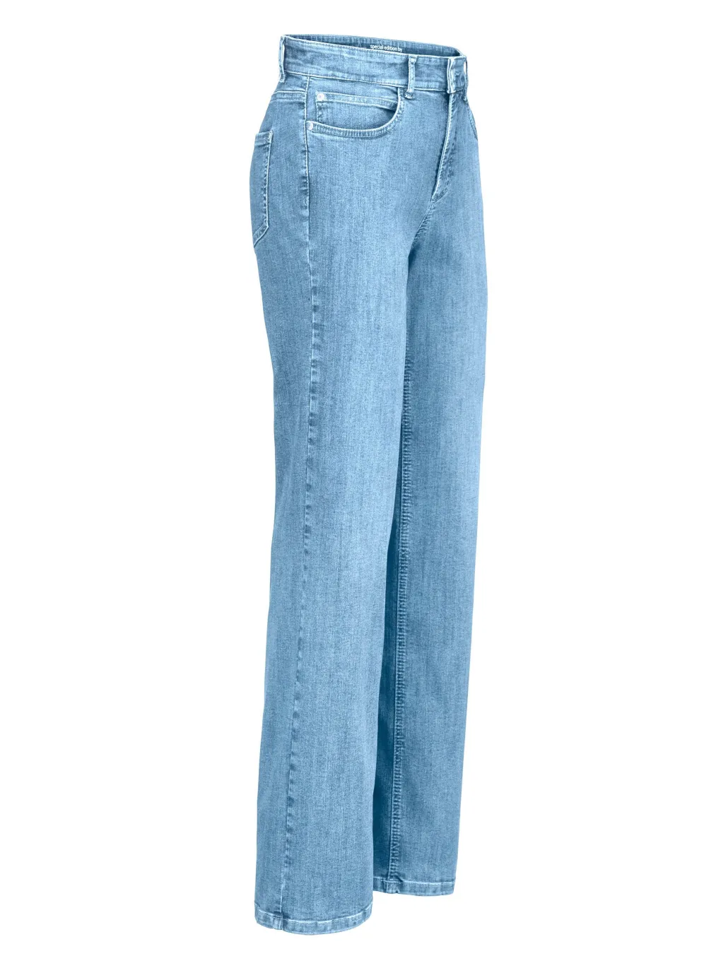 Stars by ascari – Modischer Denim-Look mit Stern-Details. Zeitlose Jeans mit weiterem Beinverlauf in 5-Pocket-Form mit dekorativen Ziernieten, Knopf- und Reißverschluss, Gürtelschlaufen, Jeanssattel, Sternniete auf der Kleingeldtasche sowie Knopf mit Sternprägung. Innenbeinlänge ca. 78 cm, Beinweite ca. 44 cm.