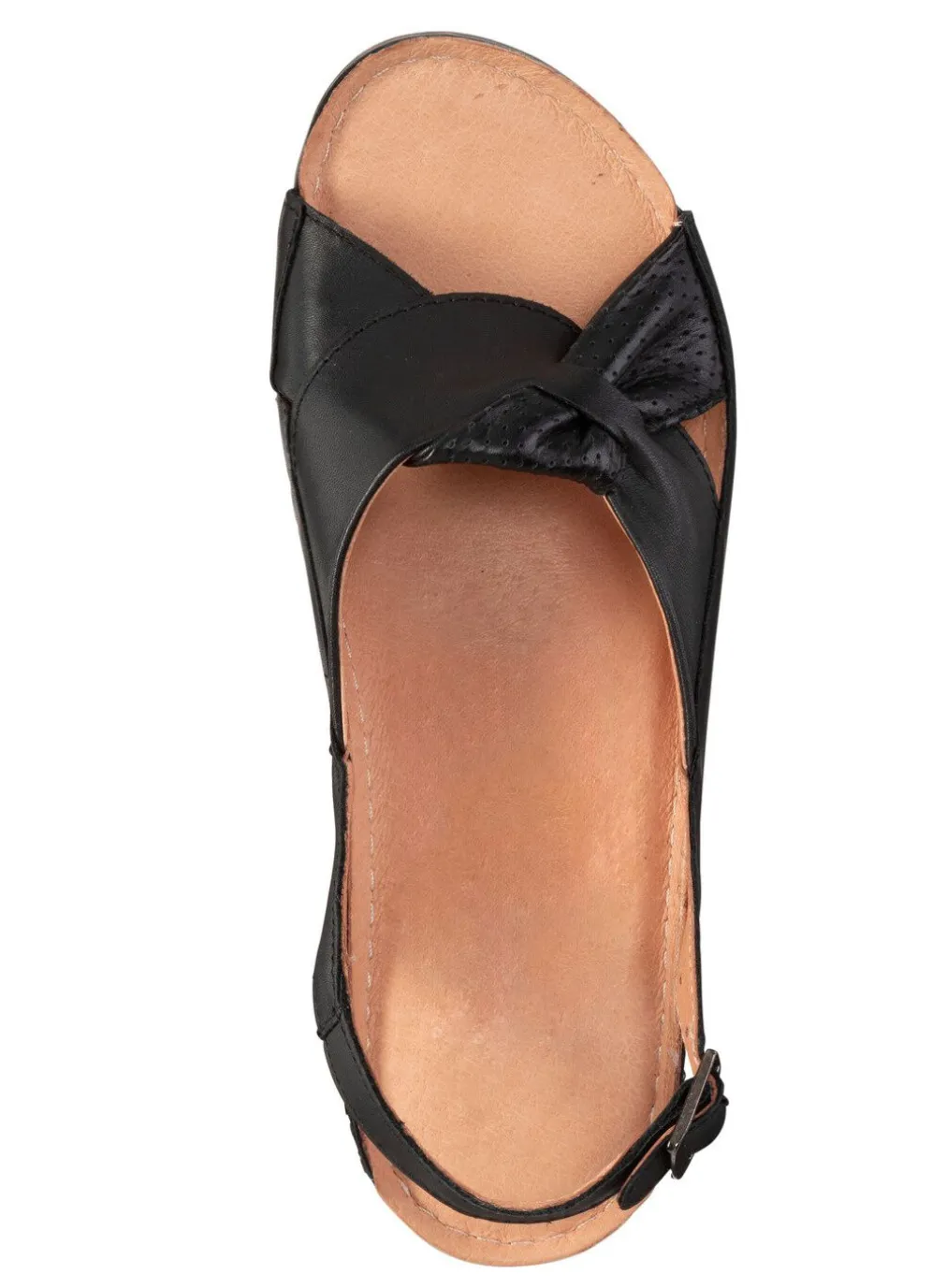 Sandale aus teilweise perforiertem Nappaleder: Weite G, verstellbare Fersenschließe, Lederfutter, gepolstertes Lederfußbett, leichte PU-Riffelsohle sowie 25 mm Keilabsatz