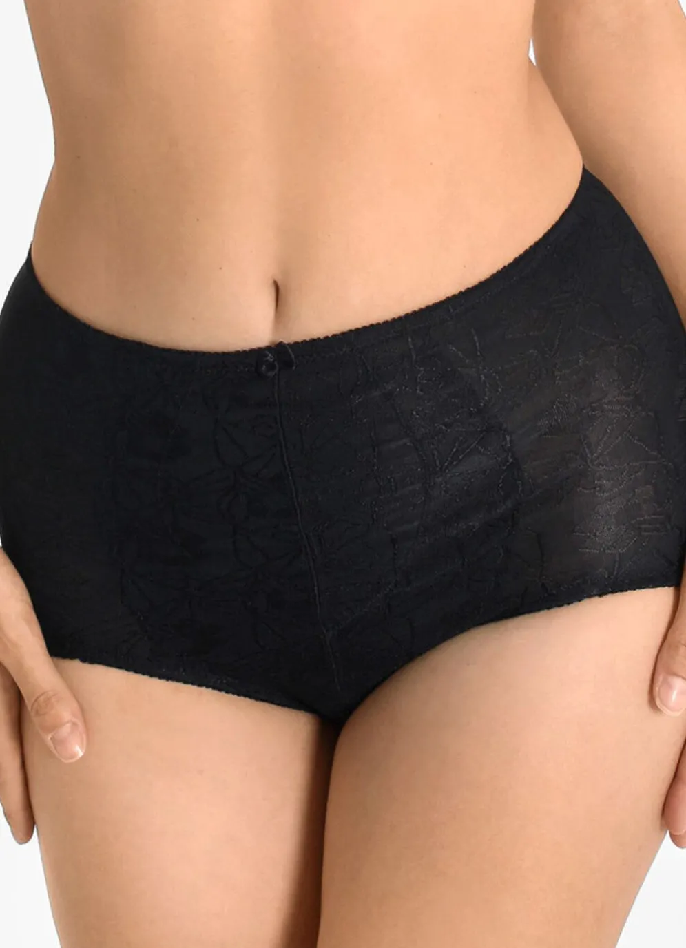 Sanft formender „Sassa“-Miederslip in dezent glänzendem Jacquarddessin, mit verstärkter Bauchpartie sowie Baumwolleinlage im Schritt.