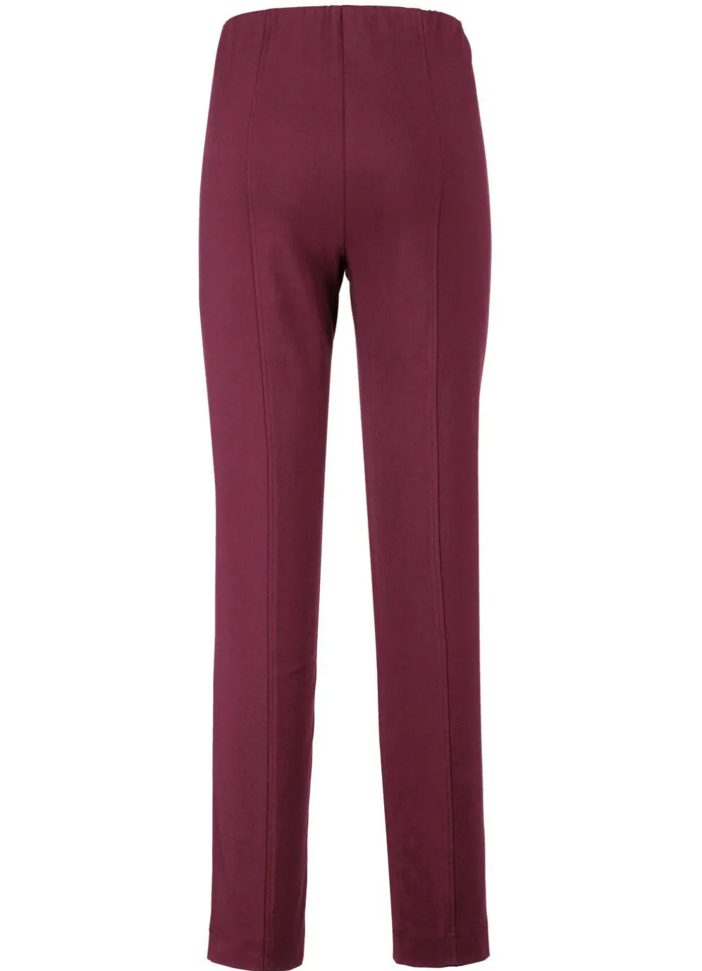 Schicke Hose in bequemer Schlupfform: angeschnittener Bund, Reißverschluss-Zierblende, figurformende Abnäher unterhalb des Bundes im Vorderteil sowie abgesteppte Teilungsnähte im Rückteil. Innenbeinlänge ca. 76 cm, Fußweite ab 34 cm.